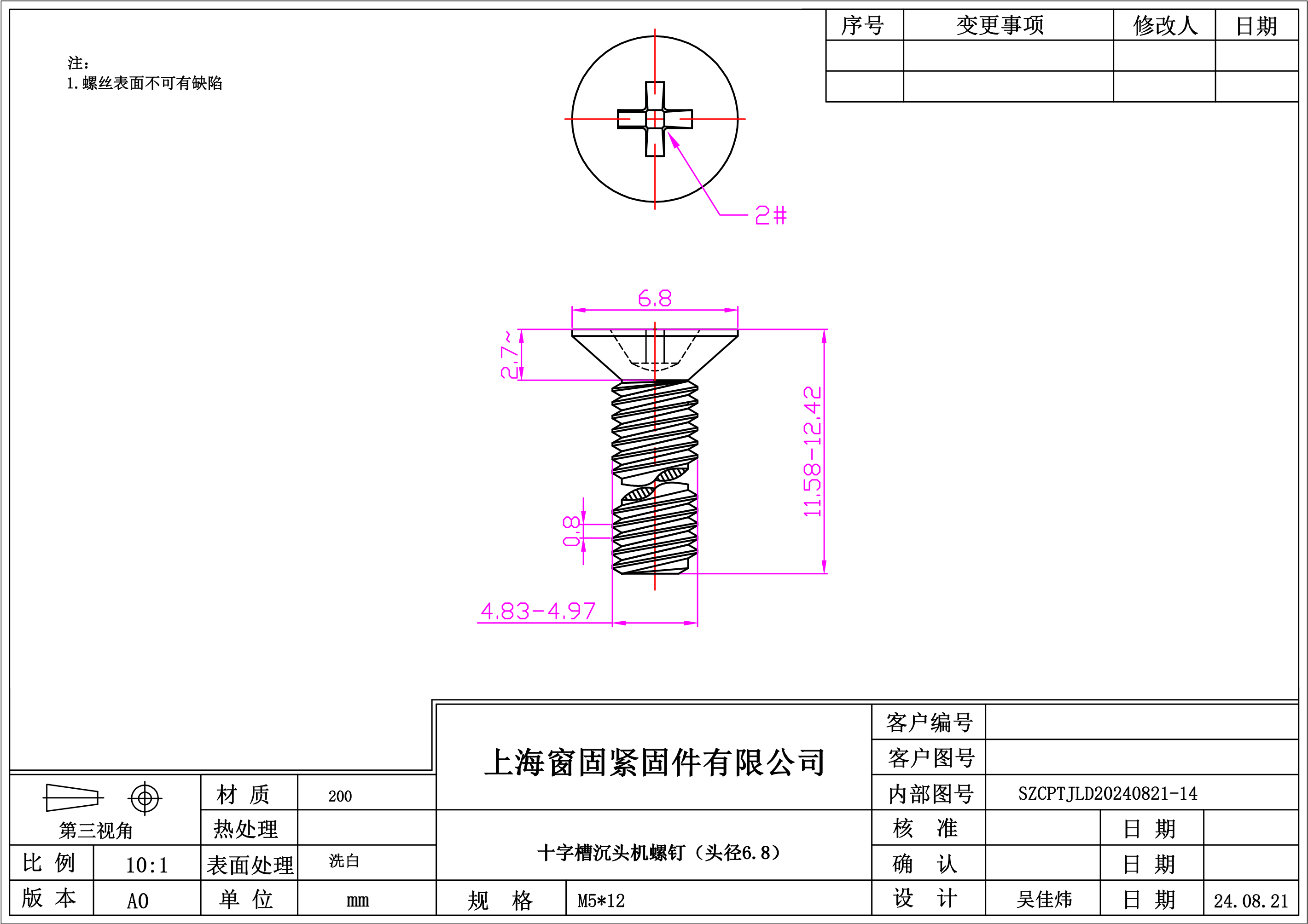 不锈钢200十字沉头机螺钉~5*12~洗白~(头径6.8)