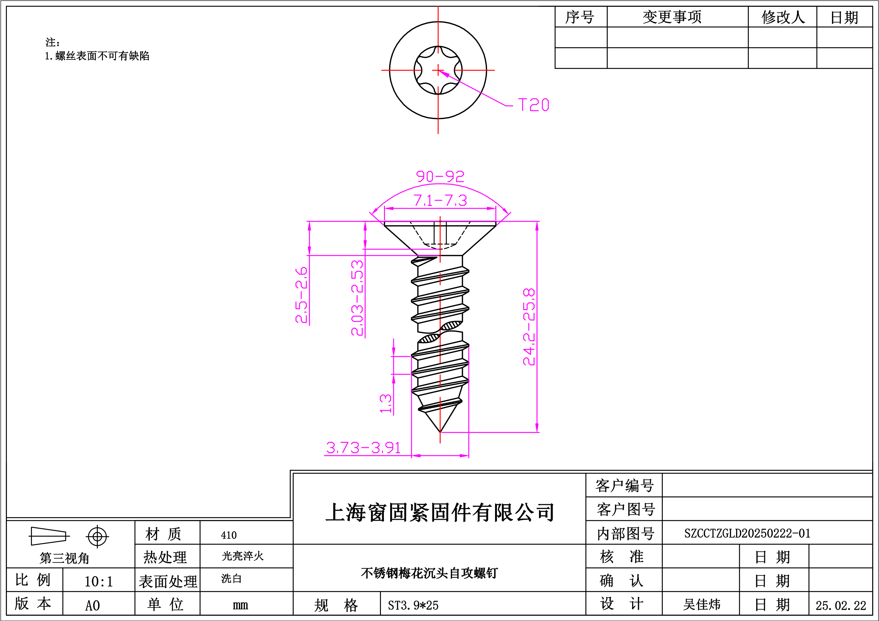 不锈钢410梅花沉头自攻螺钉~3.9*25~洗白~(头径7.1-7.3)