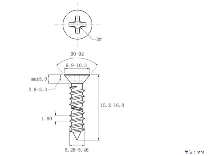 十字沉头带筋细牙束尾自钻自攻螺钉