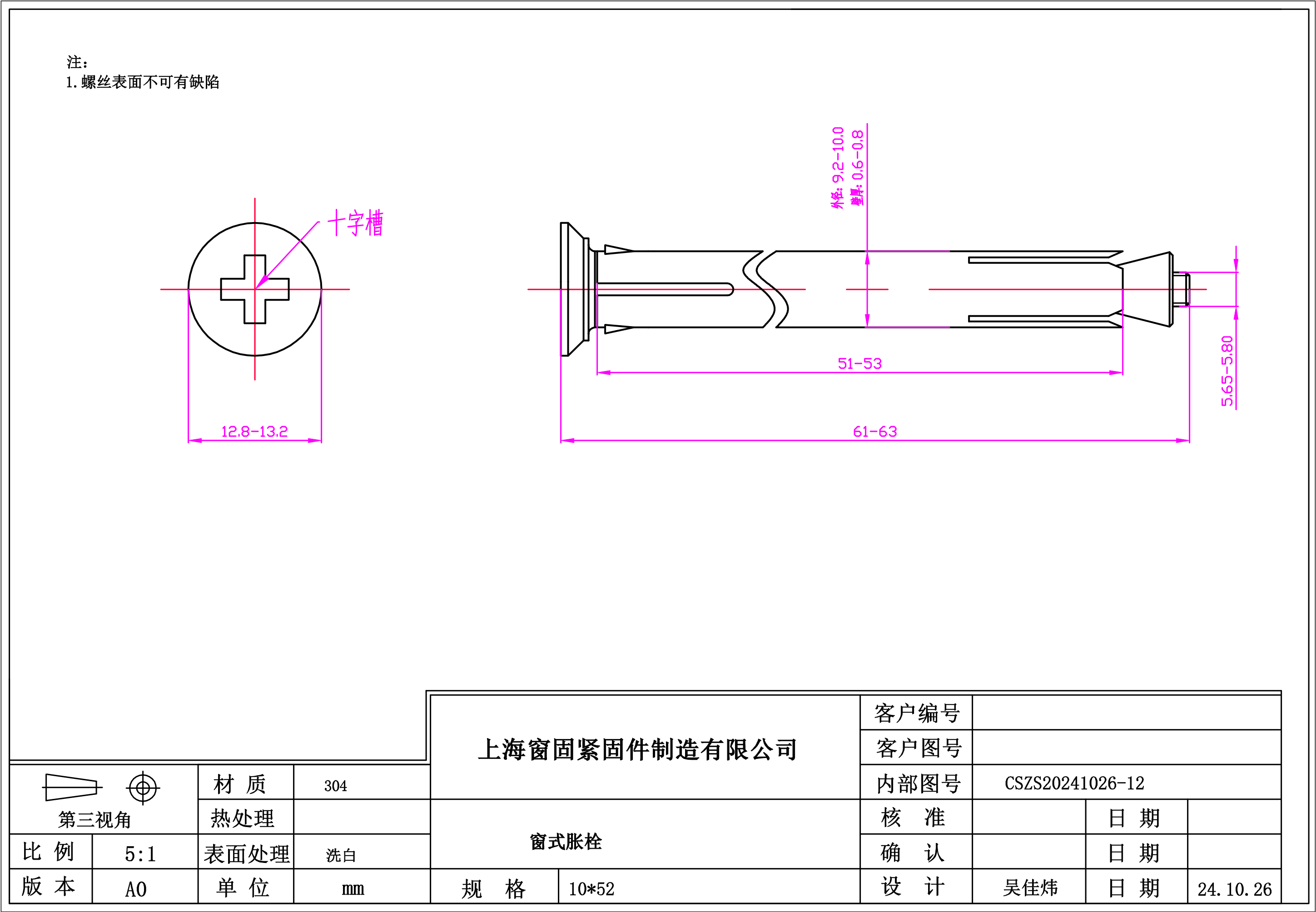 不锈钢304窗式胀栓~10*52~洗白~YP