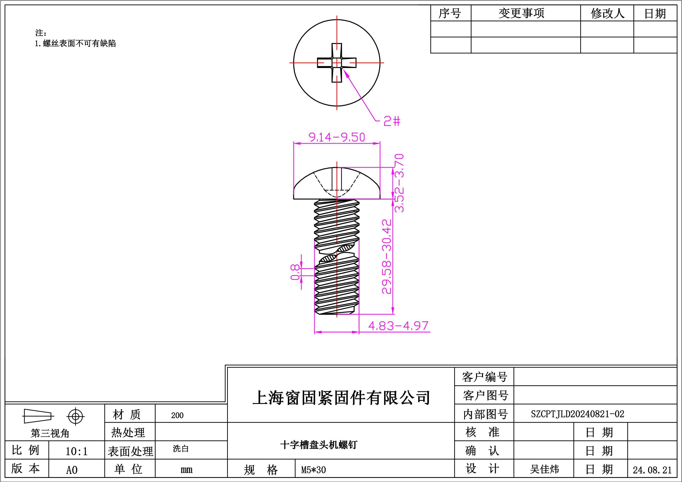 不锈钢200十字盘头机螺钉~5*30~洗白