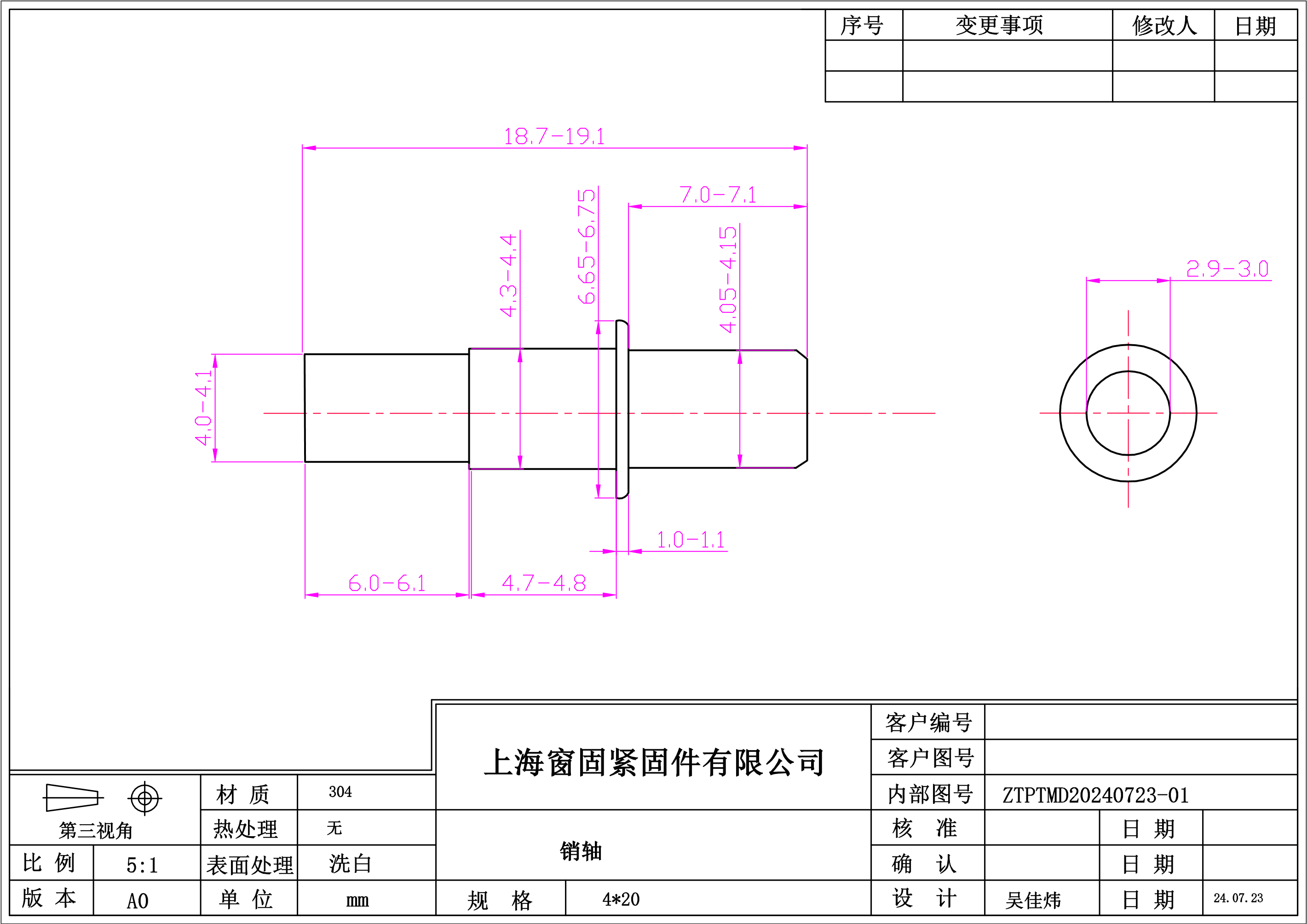 不锈钢304.销轴.~4*20~洗白