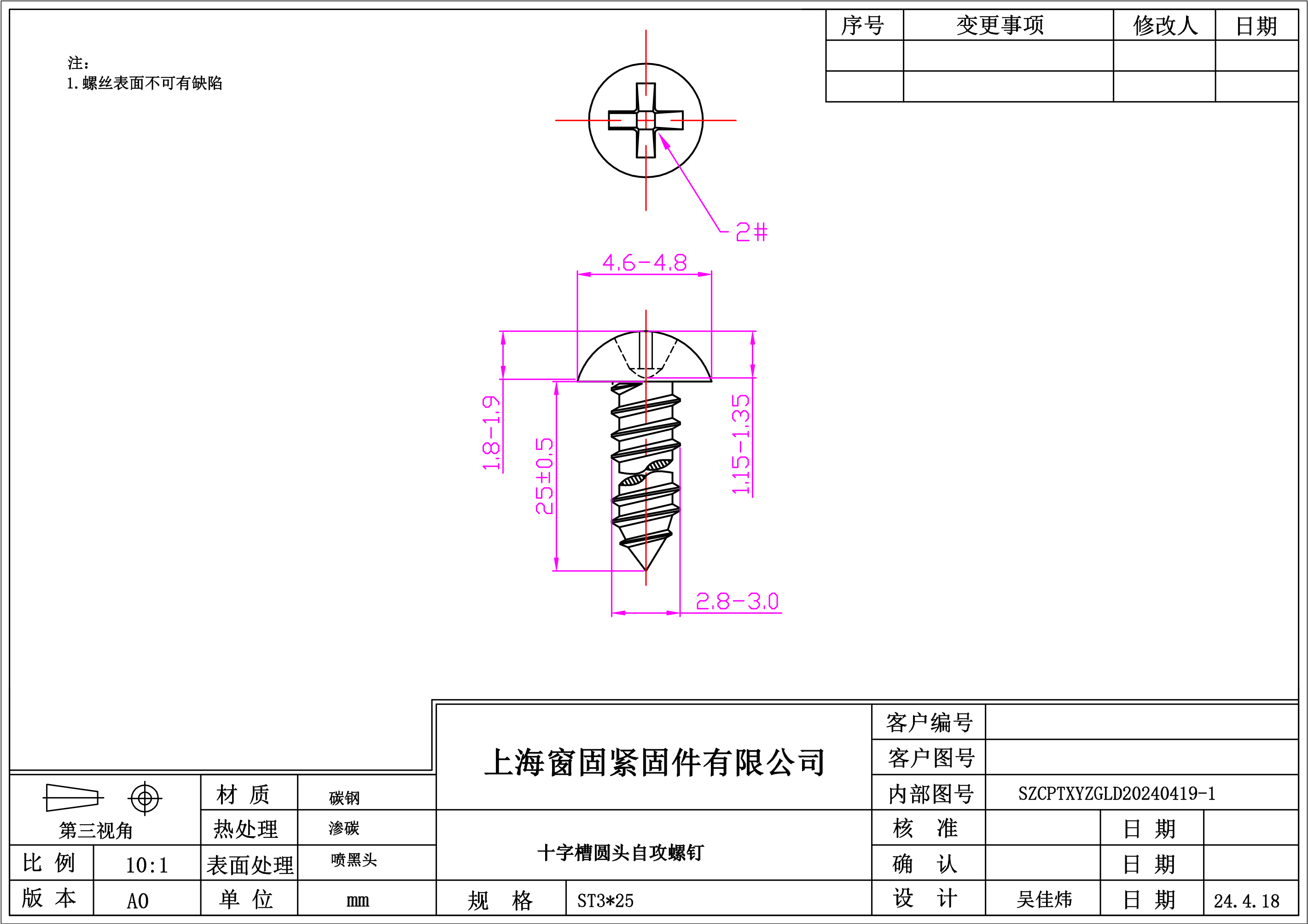 十字圆头自攻螺钉~3*25~蓝白锌~(喷黑头)