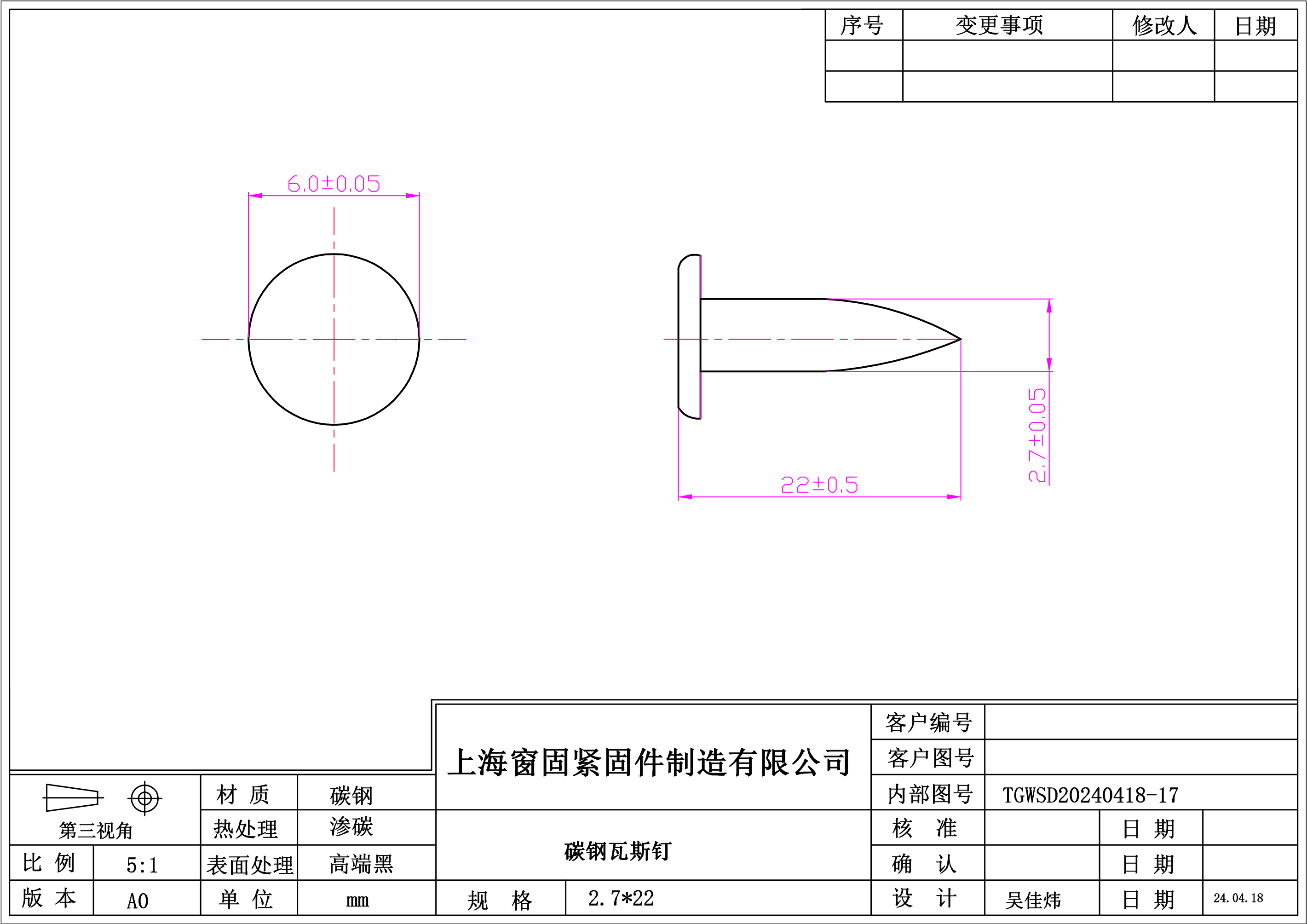 碳钢瓦斯钉~2.7*22~高端黑