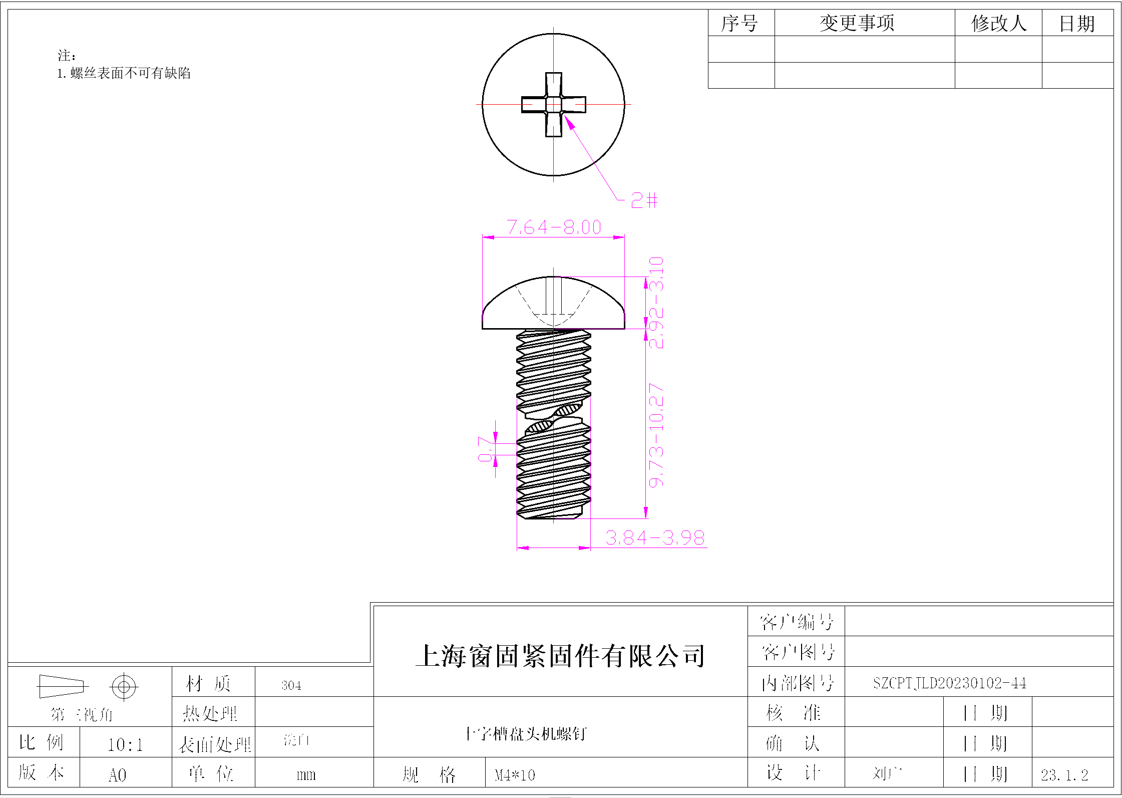 不锈钢304十字盘头机螺钉~4*10~洗白