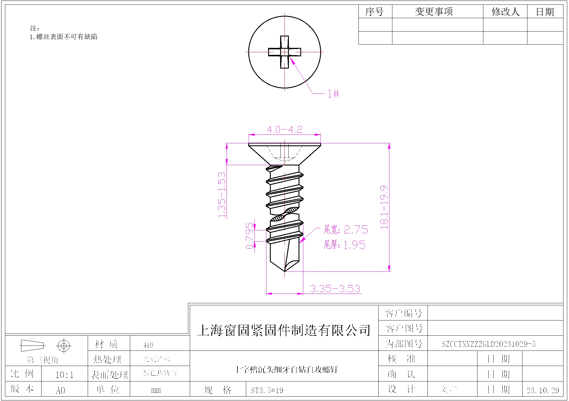 梅花沉头带筋细牙束尾自钻自攻螺钉