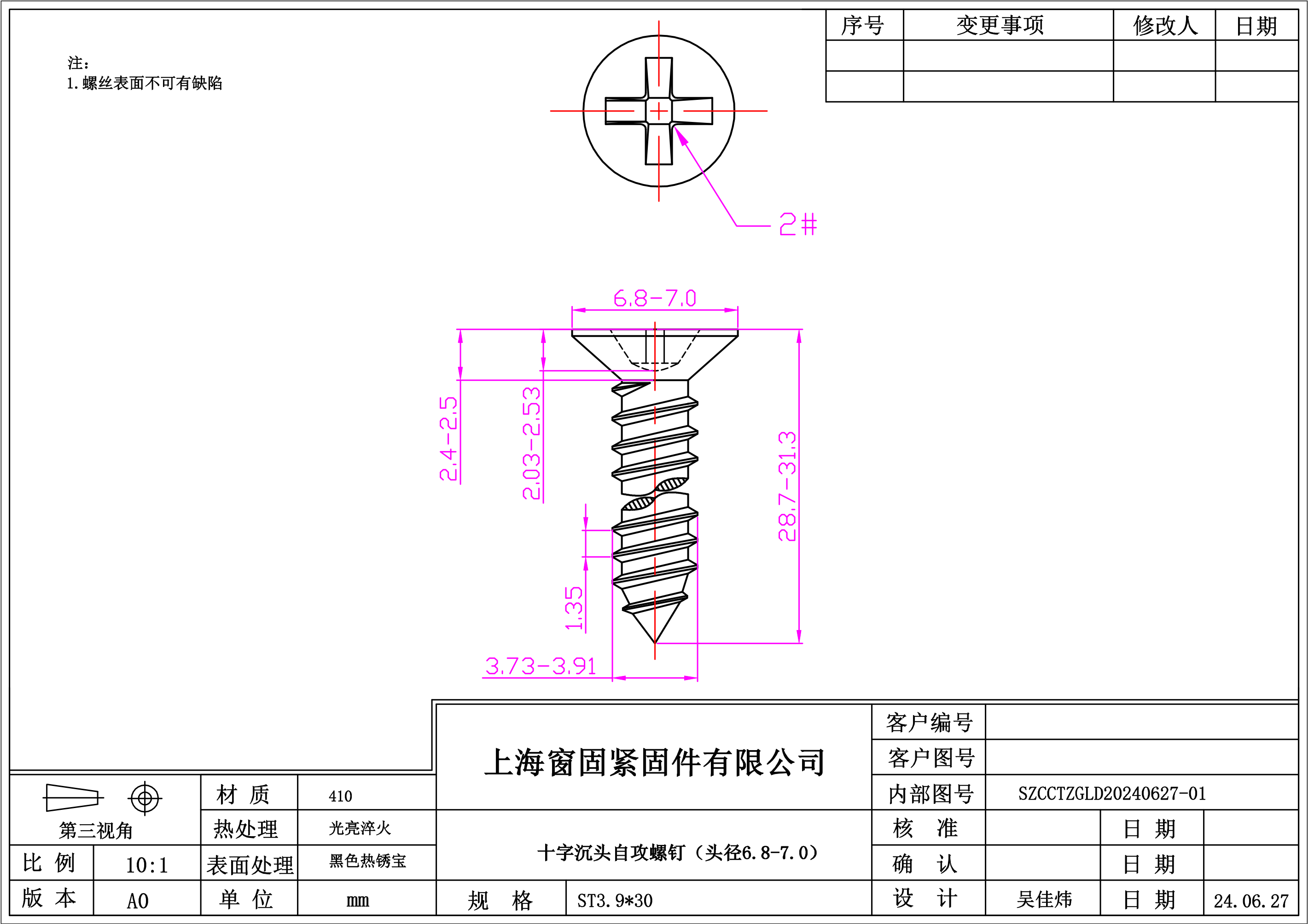 不锈钢410十字沉头自攻螺钉~3.9*30~黑色热锈宝~(头径6.8-7)