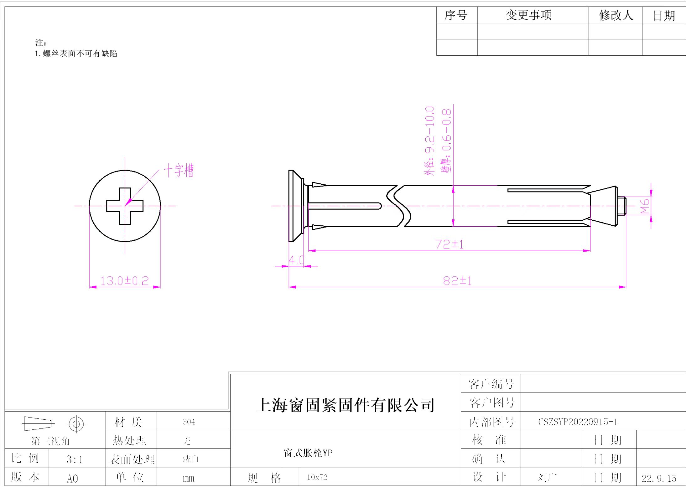 不锈钢304窗式胀栓~10*72~洗白~YP