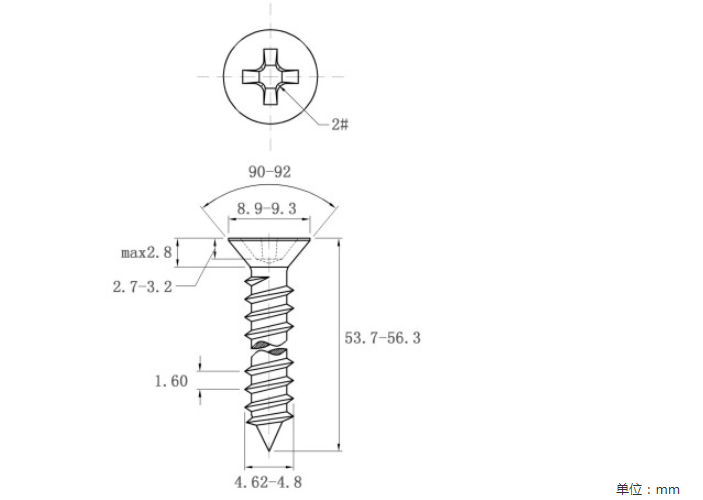 不锈钢304十字沉头自攻螺钉~4.8*55~洗白