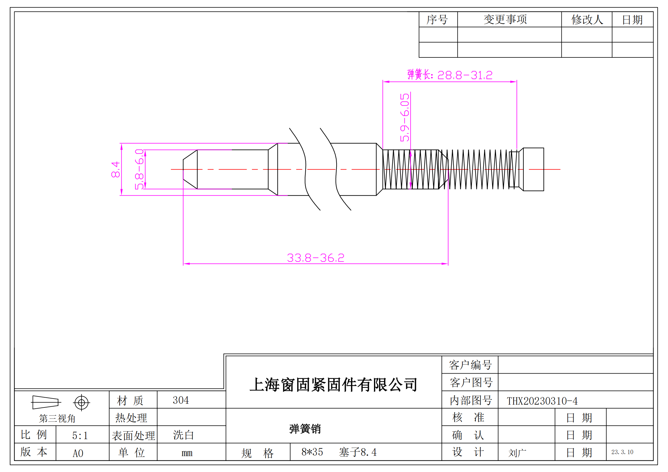 不锈钢304弹簧销~8*35~洗白~(塞子8.4)