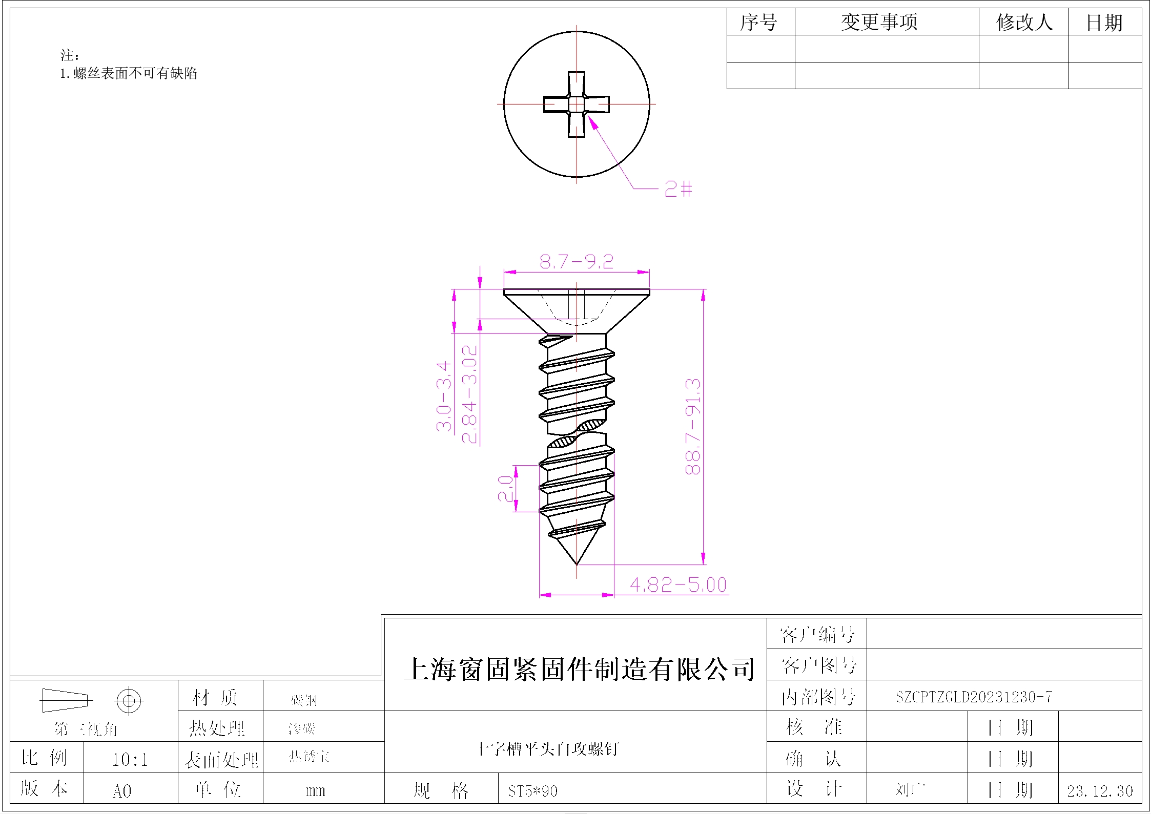 梅花沉头带筋细牙束尾自钻自攻螺钉