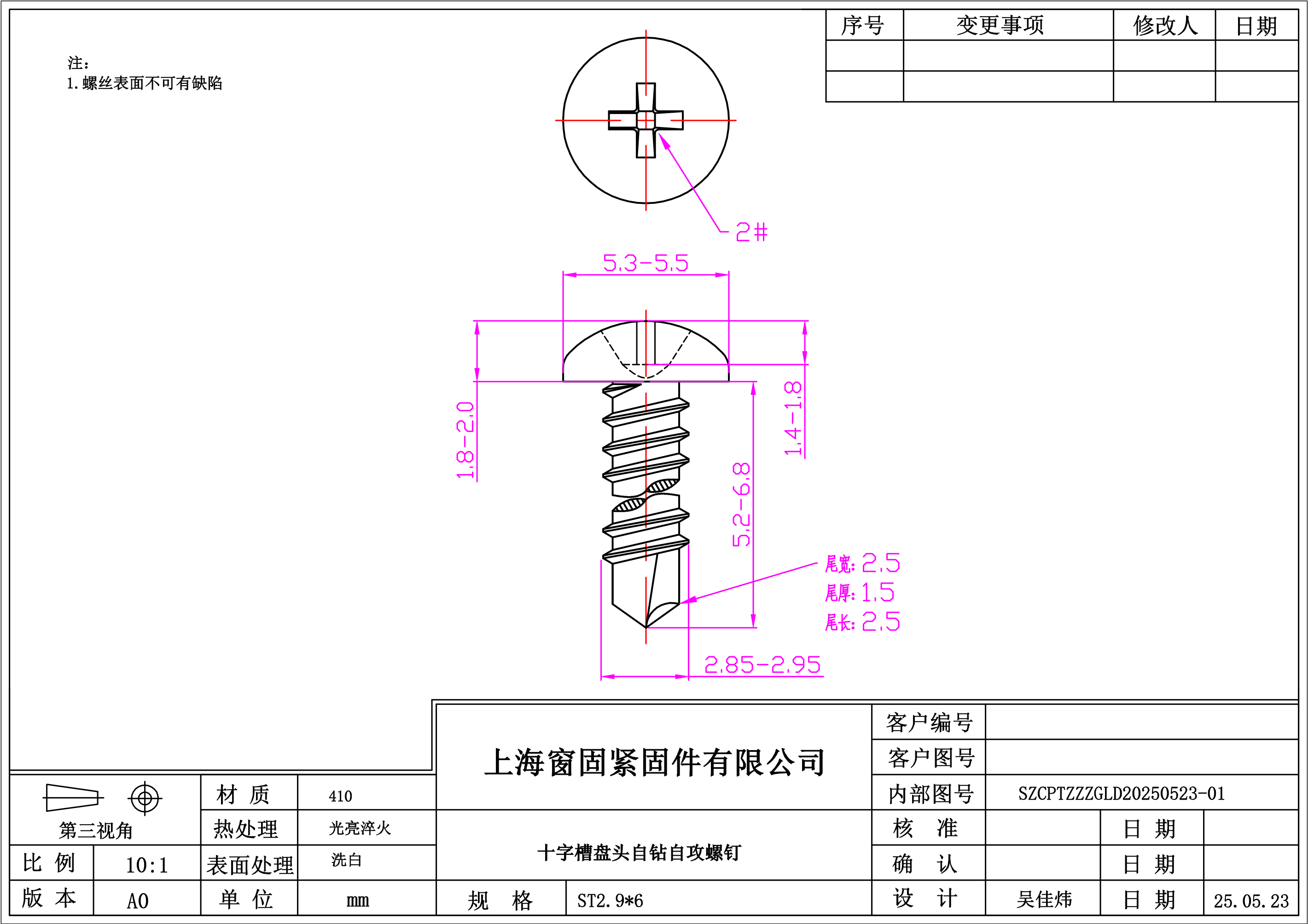 不锈钢410十字盘头自钻自攻螺钉~2.9*6~洗白~(2号槽)