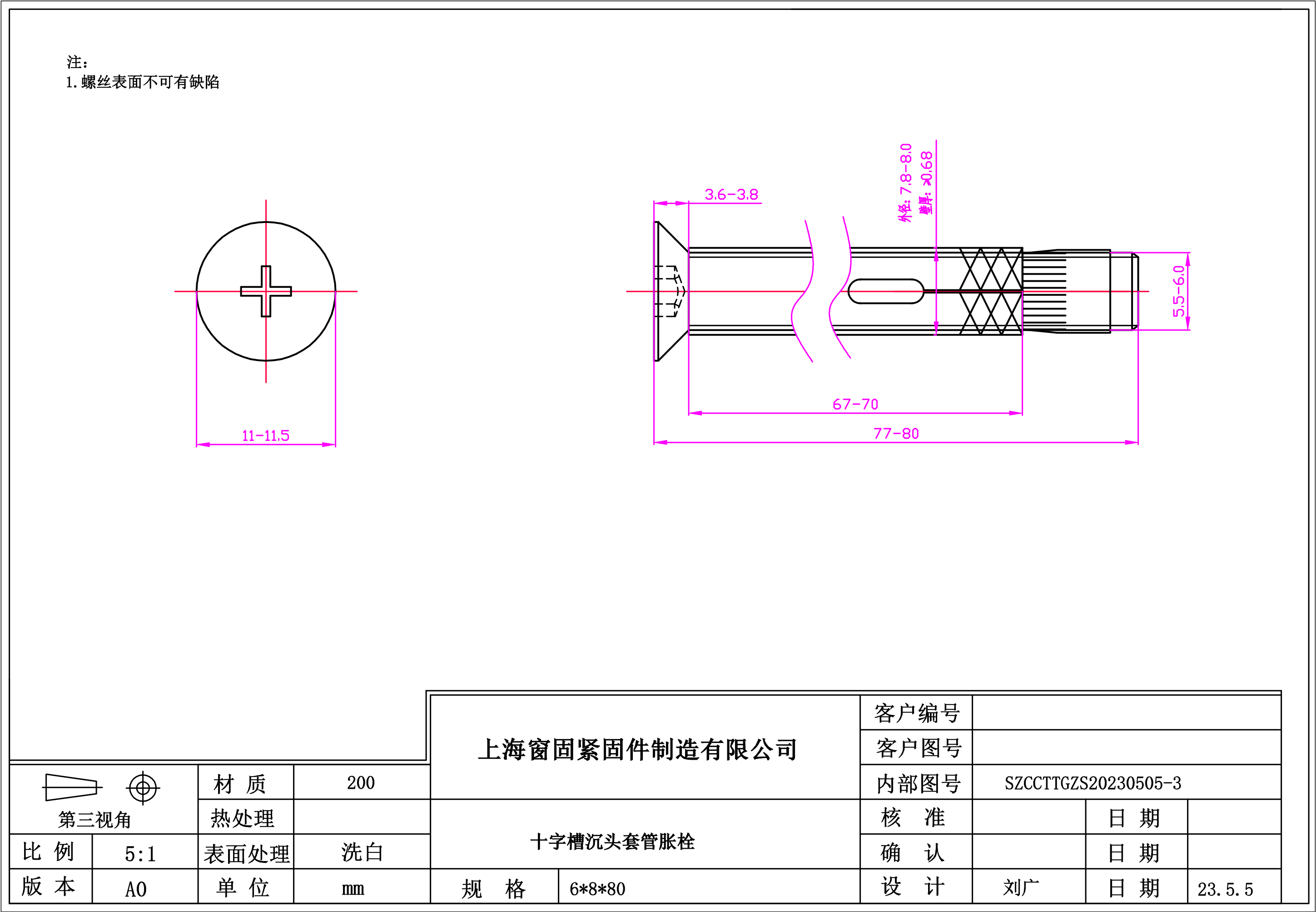 不锈钢200十字沉头套管胀栓~6*8*80~洗白
