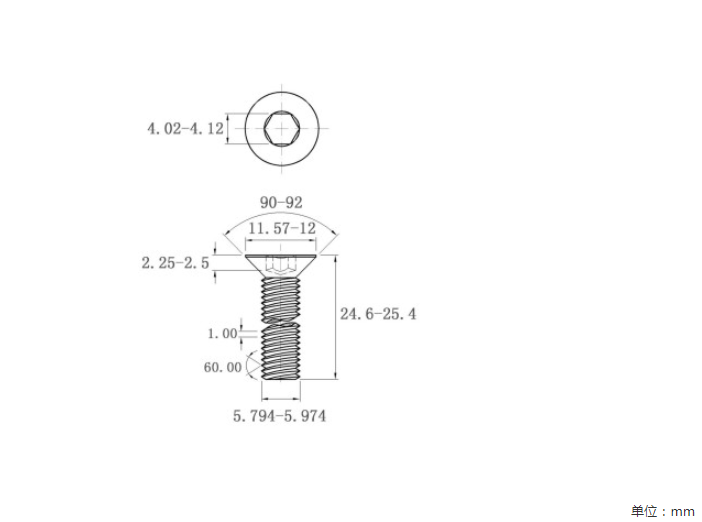 不锈钢304内六角沉头机螺钉~6*25~洗白