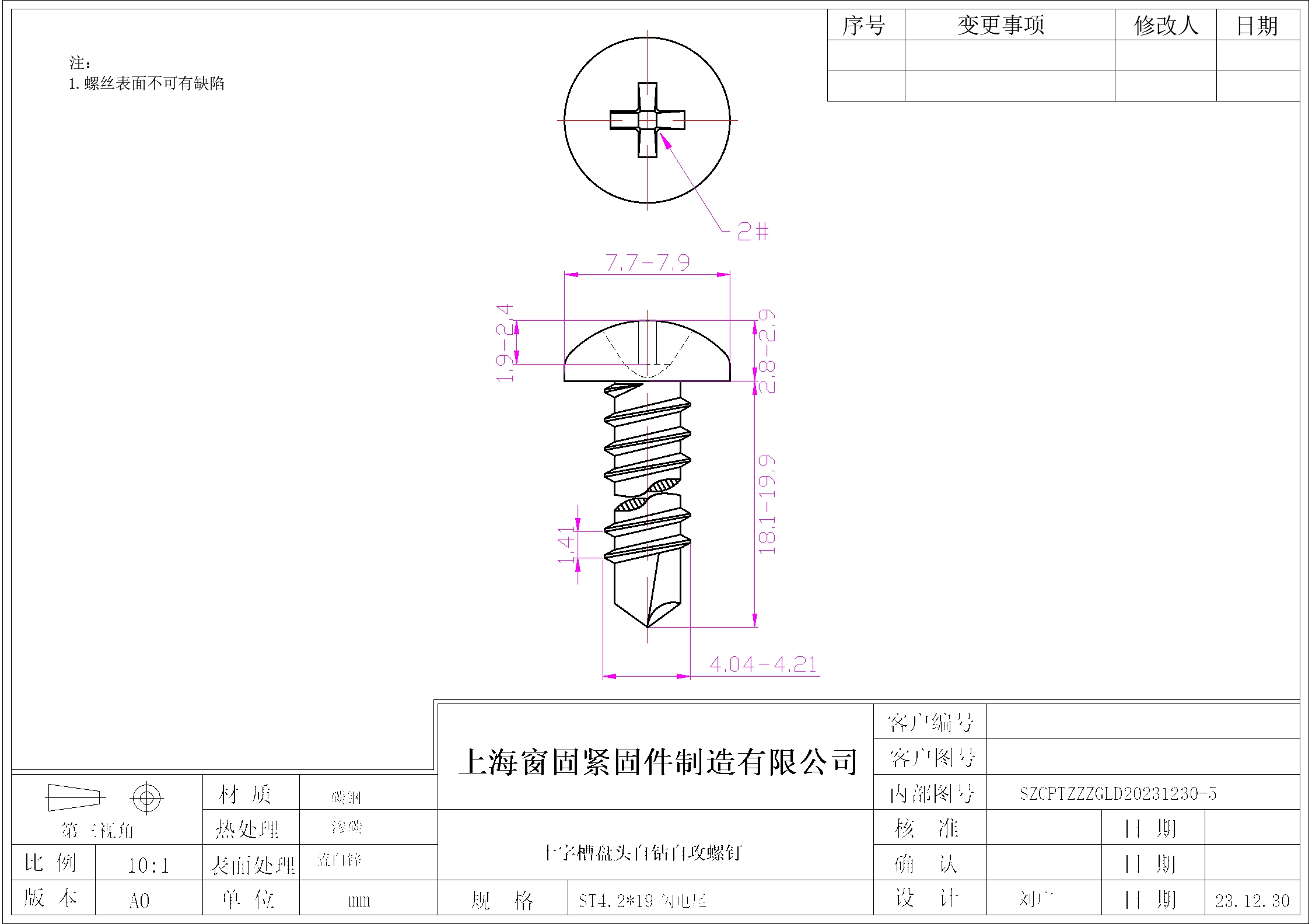 十字盘头自钻自攻螺钉