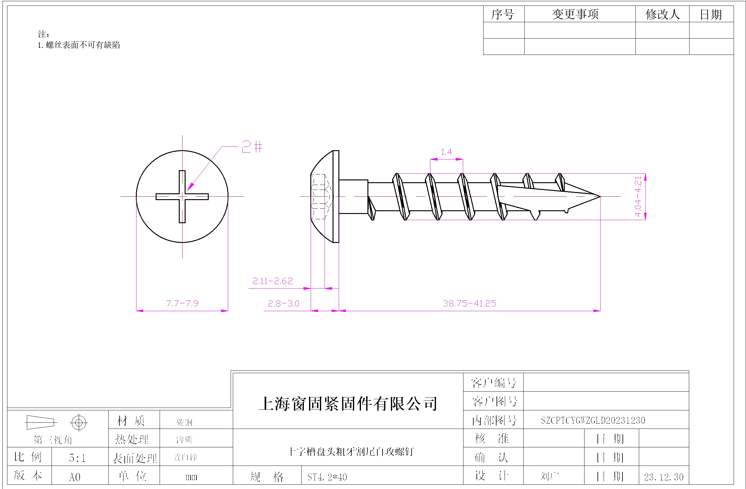 梅花沉头带筋细牙束尾自钻自攻螺钉