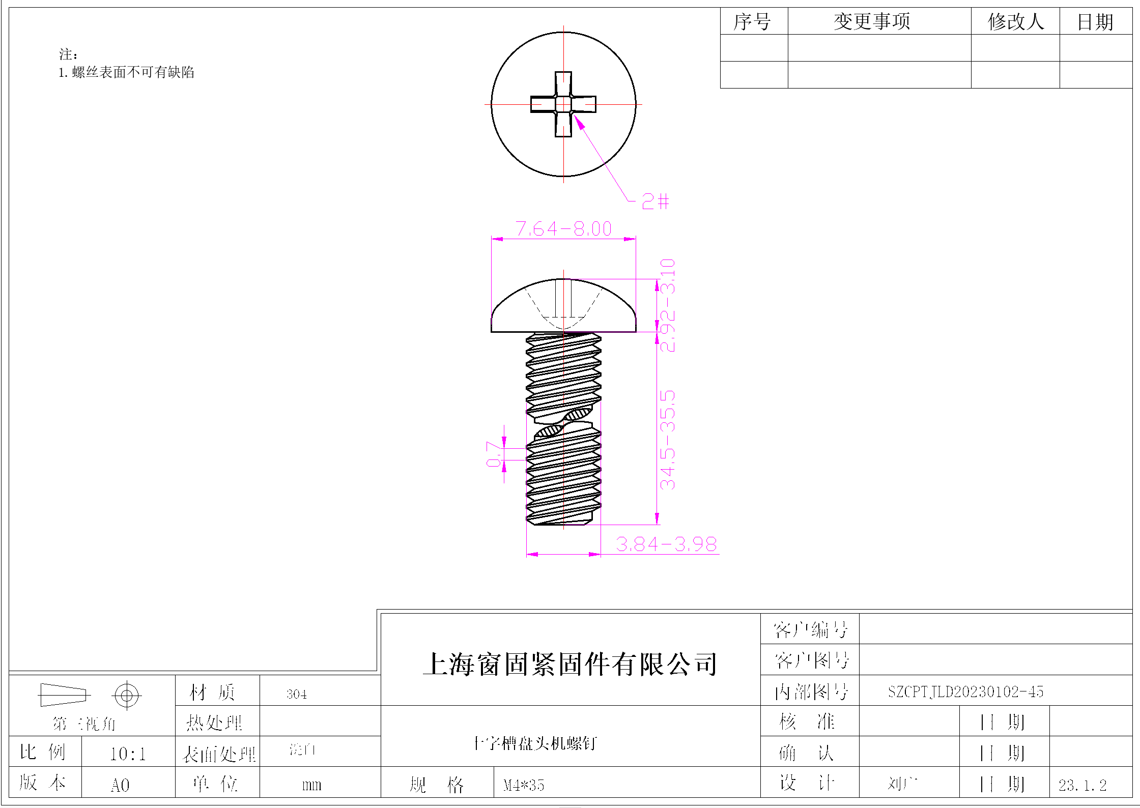 不锈钢304十字盘头机螺钉~4*35~洗白