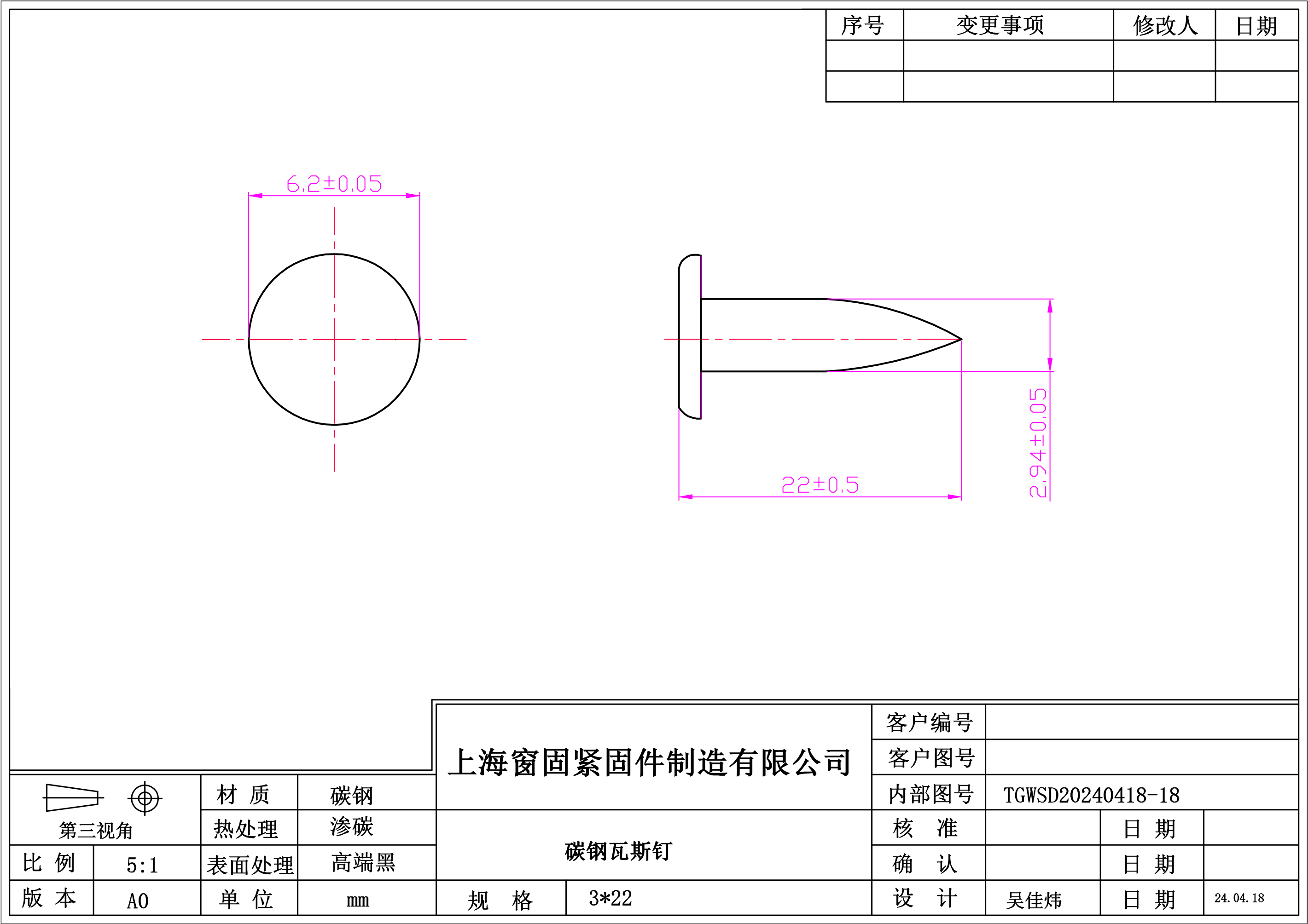 碳钢瓦斯钉~3*22~高端黑