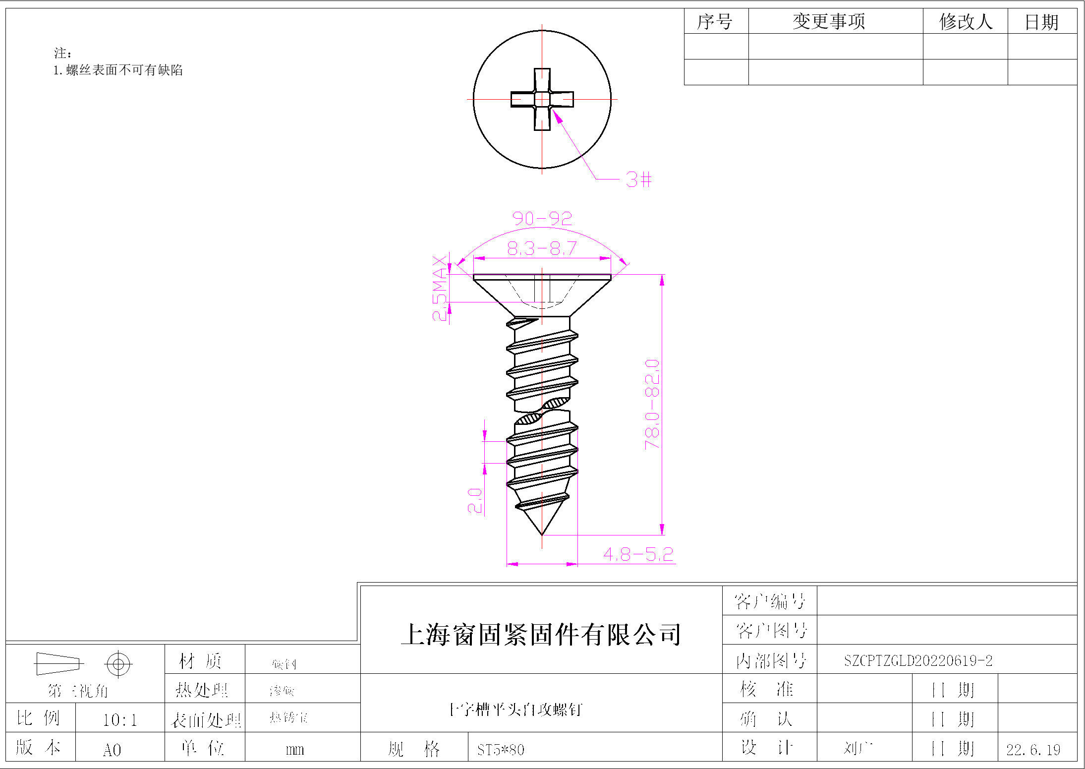 十字沉头带筋细牙束尾自钻自攻螺钉
