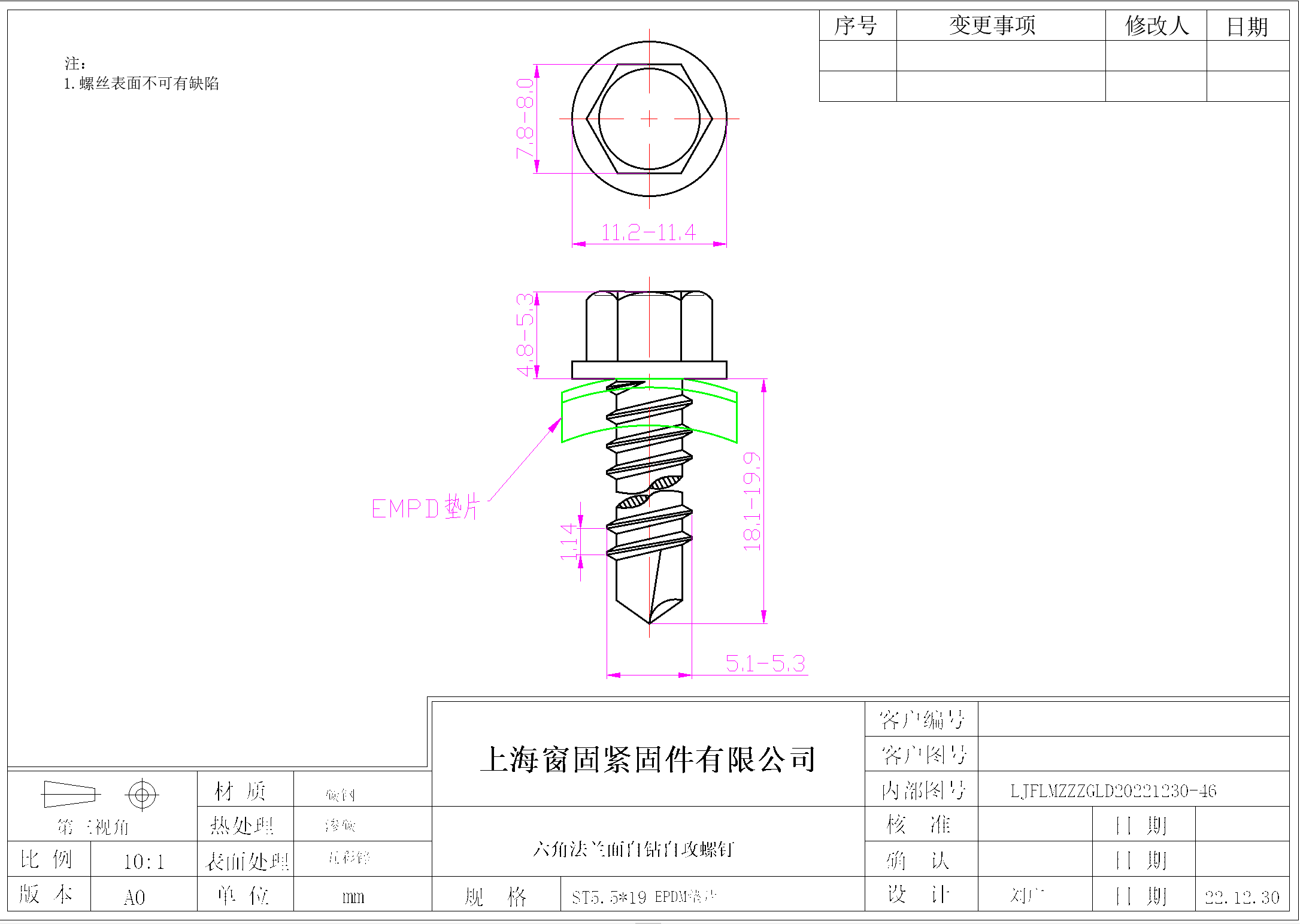 六角法兰面自钻自攻螺钉~5.5*19~五彩锌~(EPDM垫片)