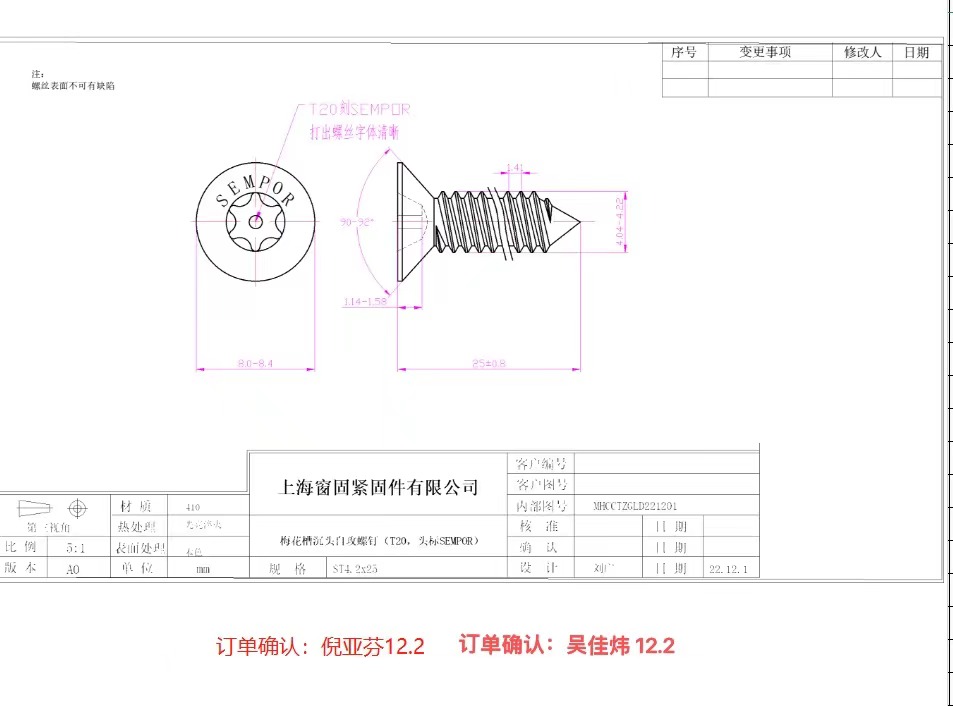 不锈钢410梅花沉头自攻螺钉~4.2*25~(T20,头标SEMPOR)