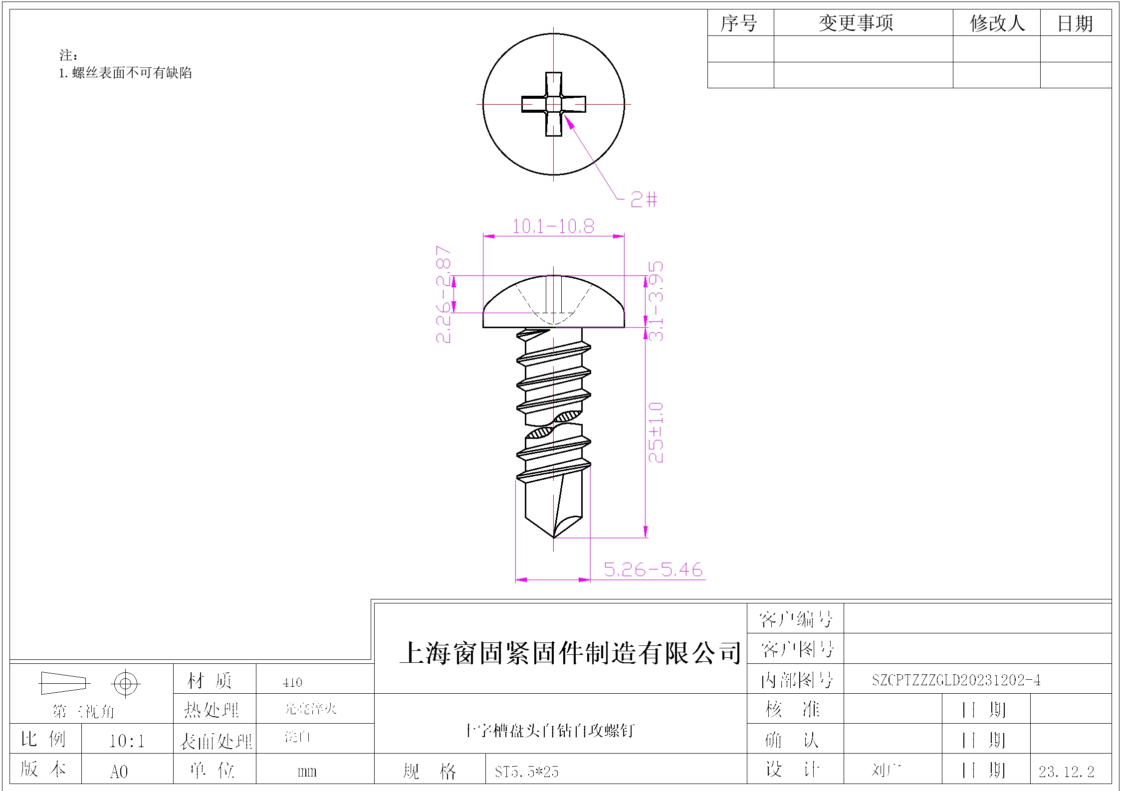 不锈钢410十字盘头自钻自攻螺钉~5.5*25~洗白~(头径10.1-10.8,头厚3.1-3.95)