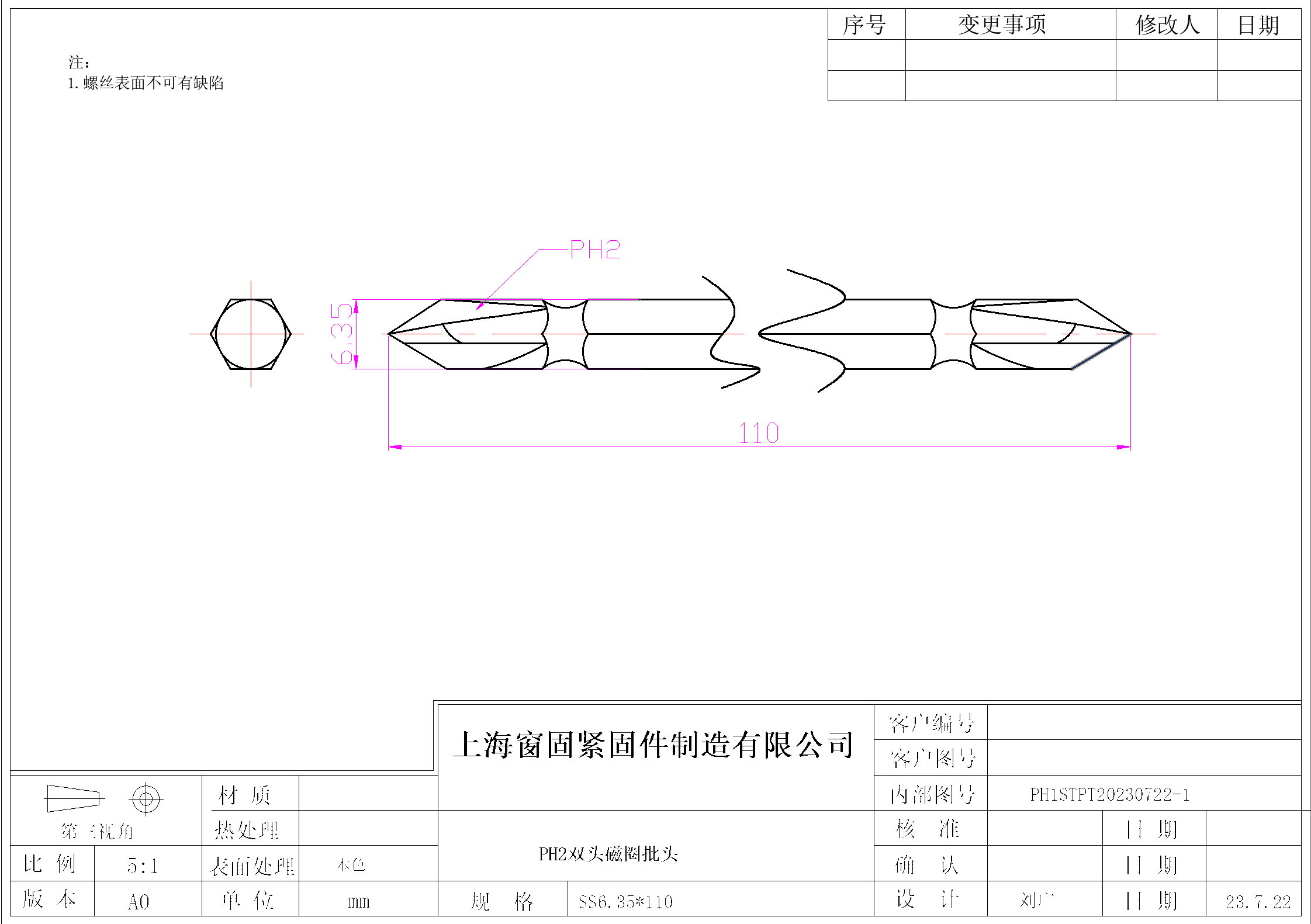 PH2双头磁圈批头~SS6.35*110~(不带磁圈)