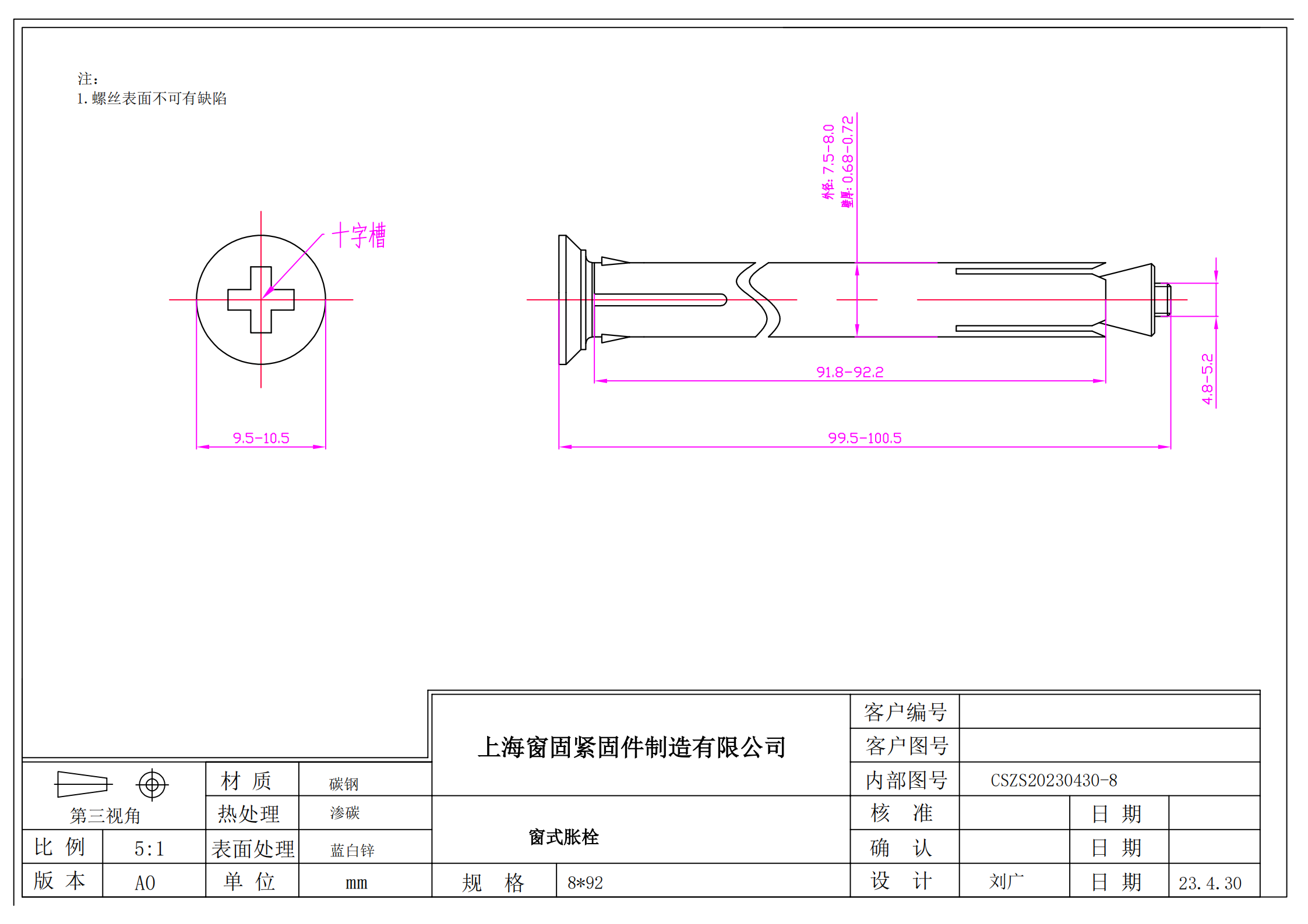 碳钢窗式胀栓~8*92