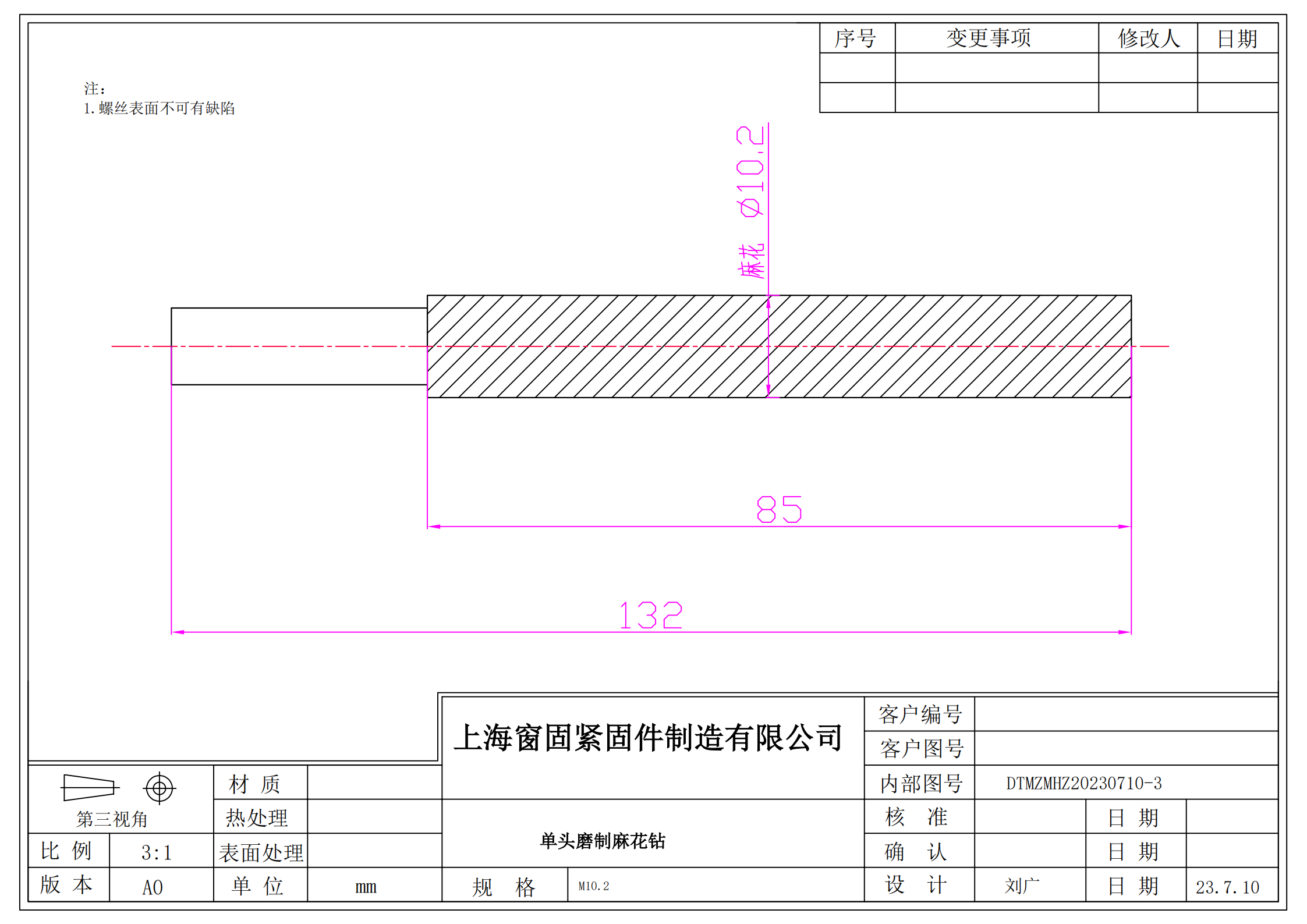 单头磨制麻花钻10.2