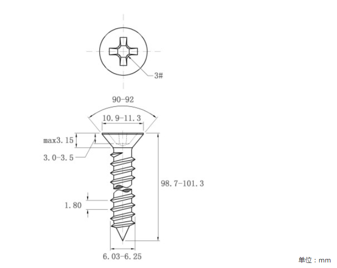 十字沉头带筋细牙束尾自钻自攻螺钉