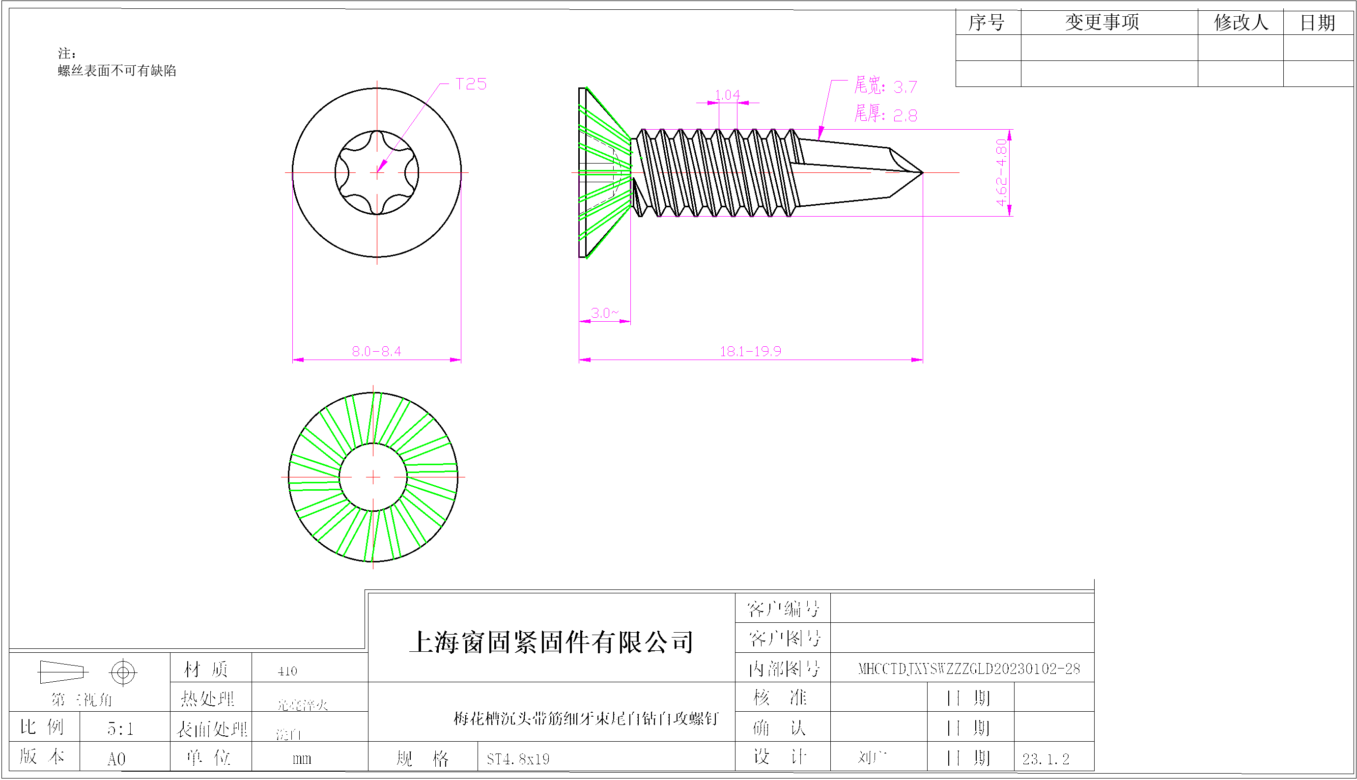 梅花沉头带筋细牙束尾自钻自攻螺钉