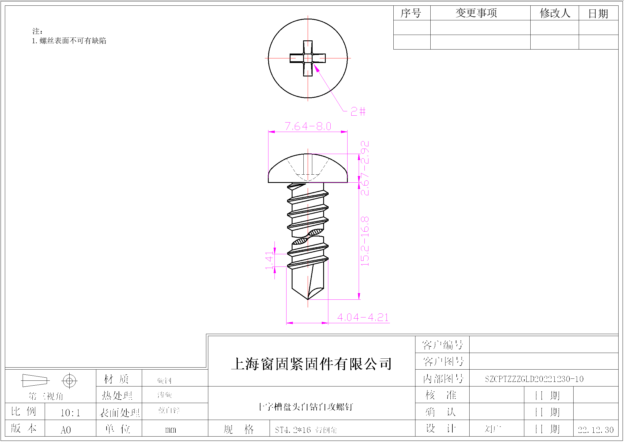 十字盘头自钻自攻螺钉~4.2*16~蓝白锌~(带倒角)