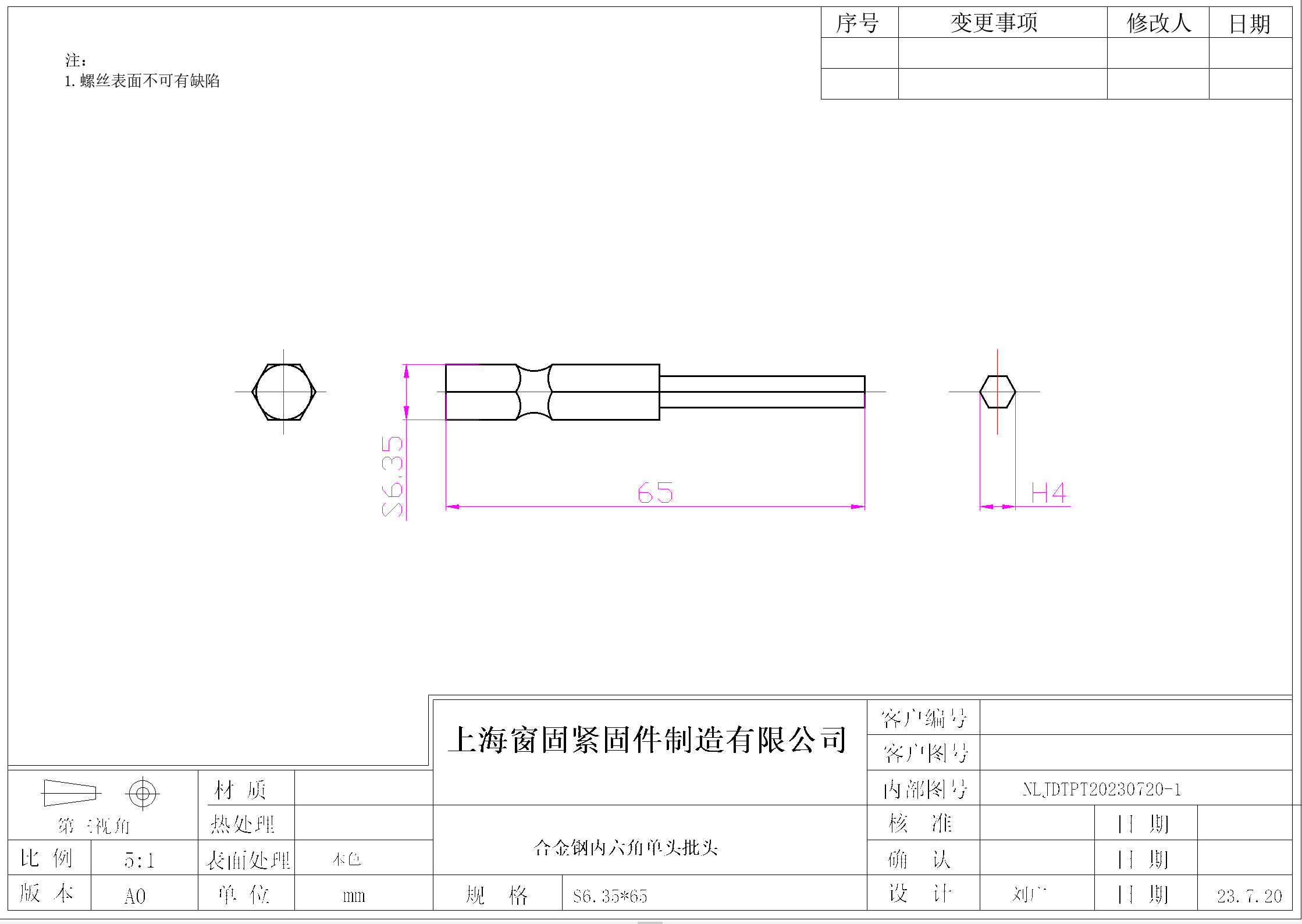 内六角单头批头~S6.35*65-4