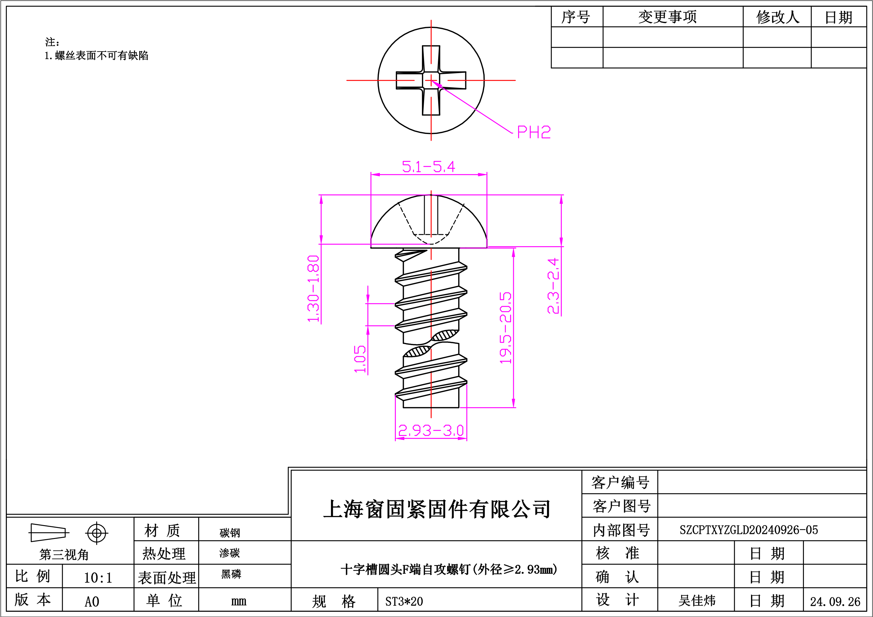 十字圆头F端自攻螺钉~3*20~磷化发黑~(外径≥2.93mm)