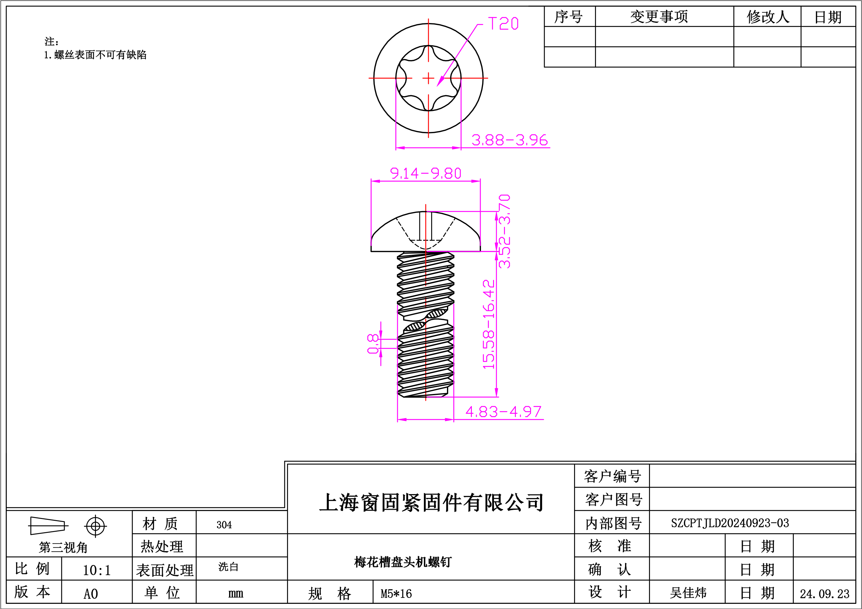 不锈钢304梅花盘头机螺钉~5*16~洗白