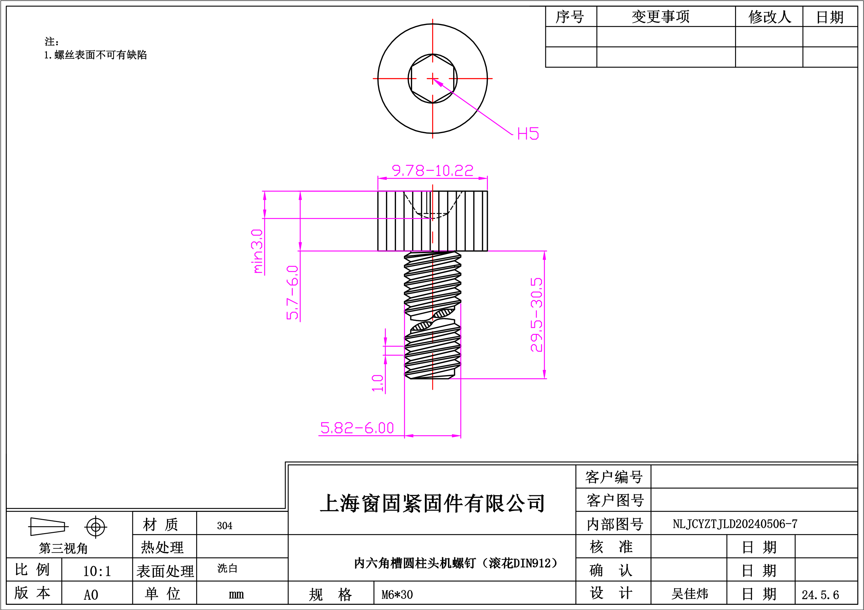 内六角头自攻螺钉