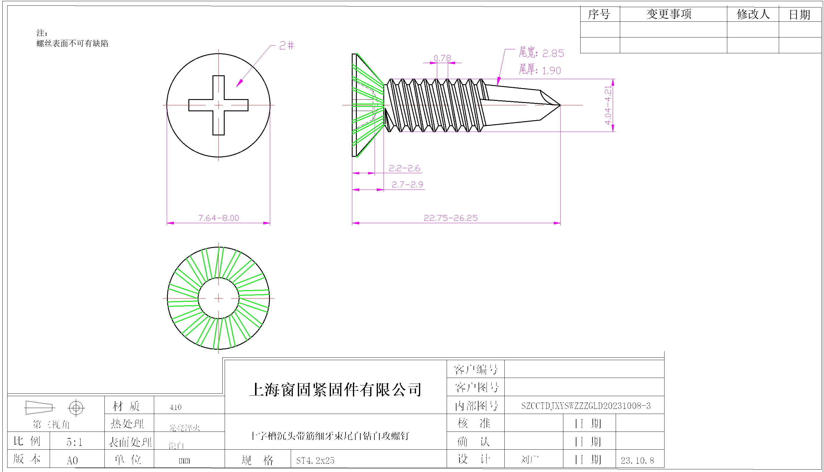 梅花沉头带筋细牙束尾自钻自攻螺钉