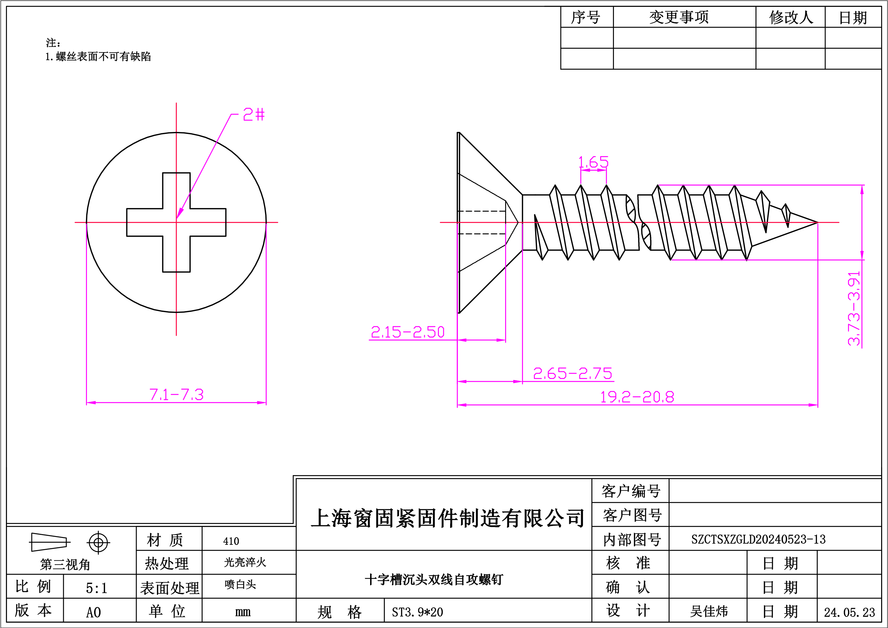 不锈钢410十字沉头双线自攻螺钉~3.9*20~喷白头