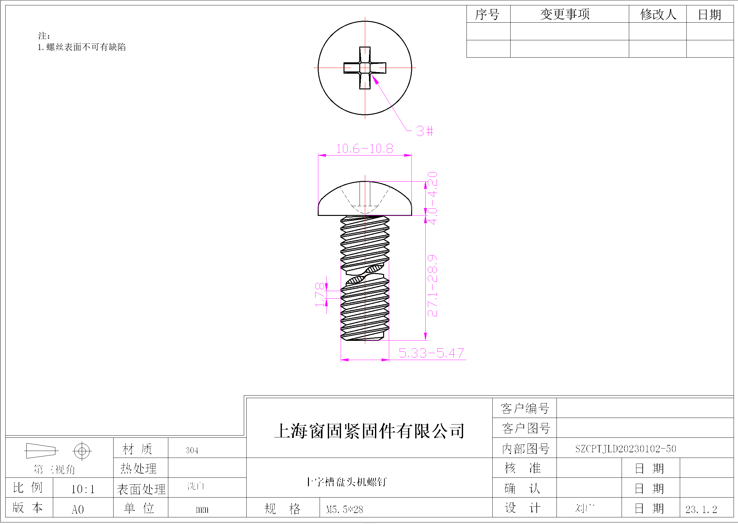 不锈钢304十字盘头机螺钉~5.5*28~洗白