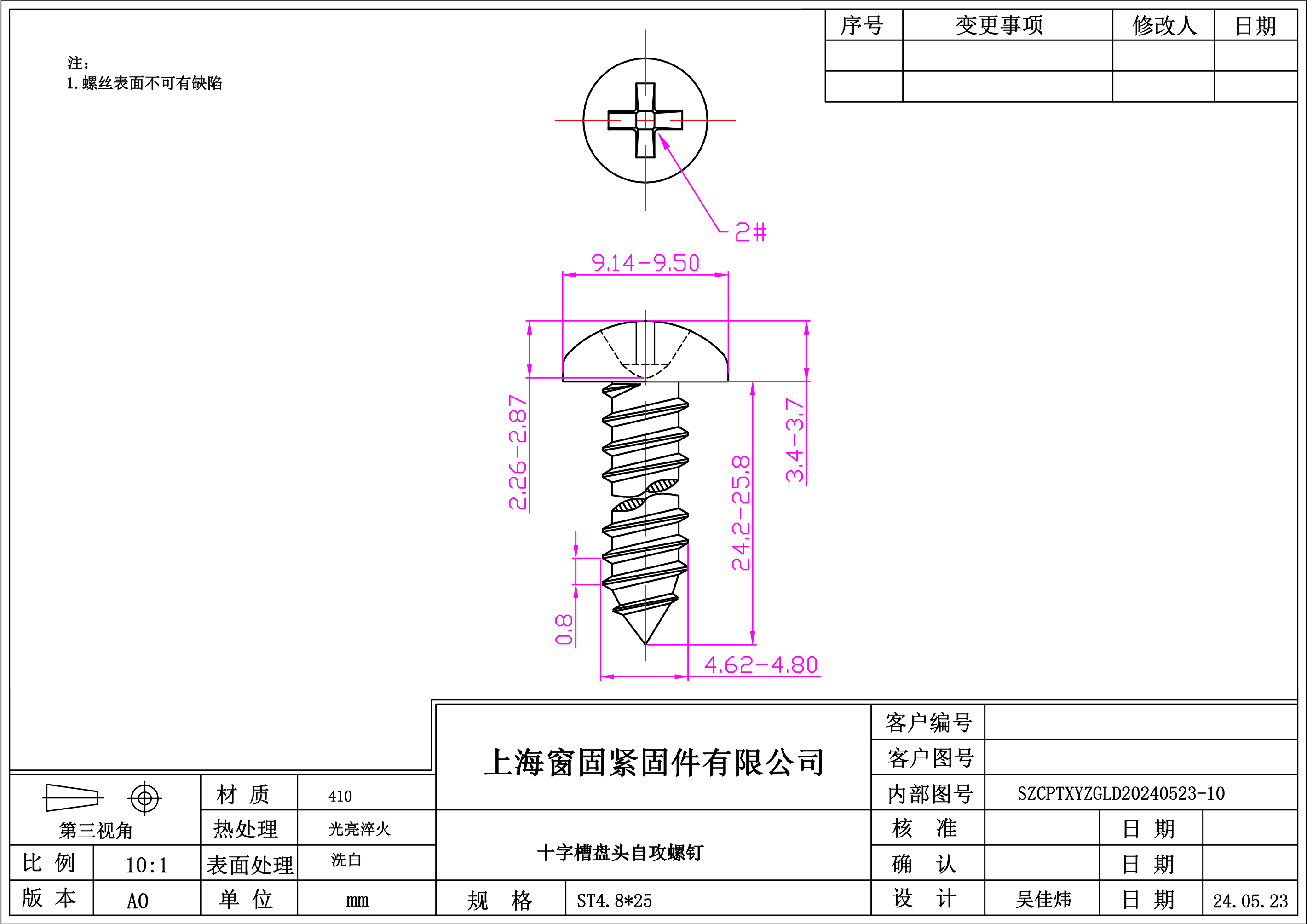 不锈钢410十字盘头细牙自攻螺钉~4.2*25~洗白