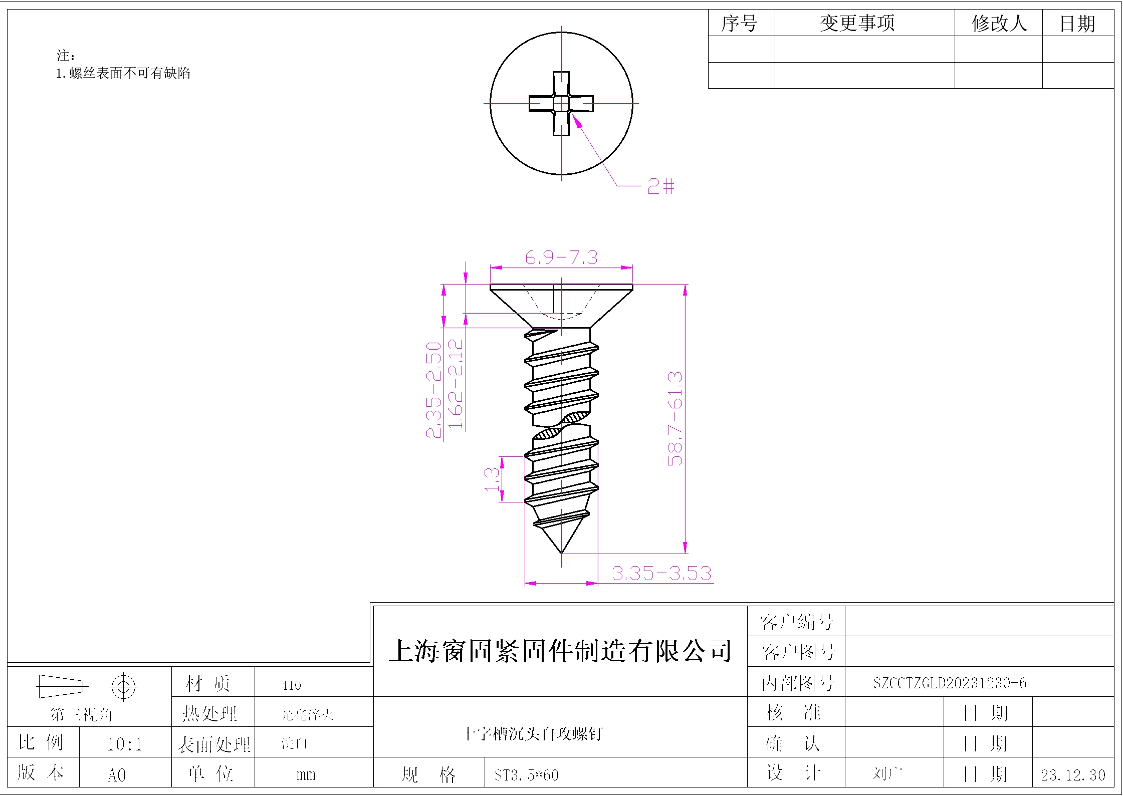 十字沉头自攻螺钉