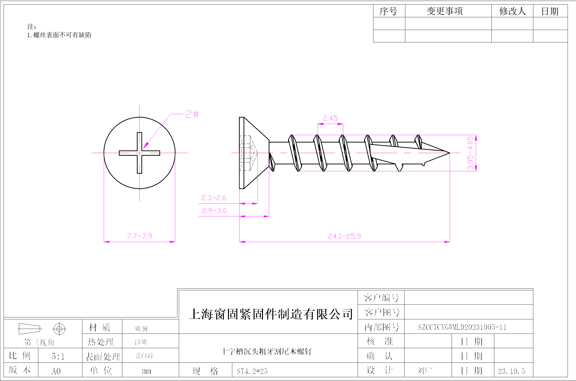 十字沉头细牙自钻自攻螺钉