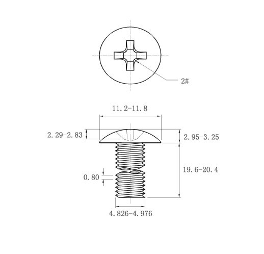 不锈钢304十字大扁头机螺钉~5*20~洗白
