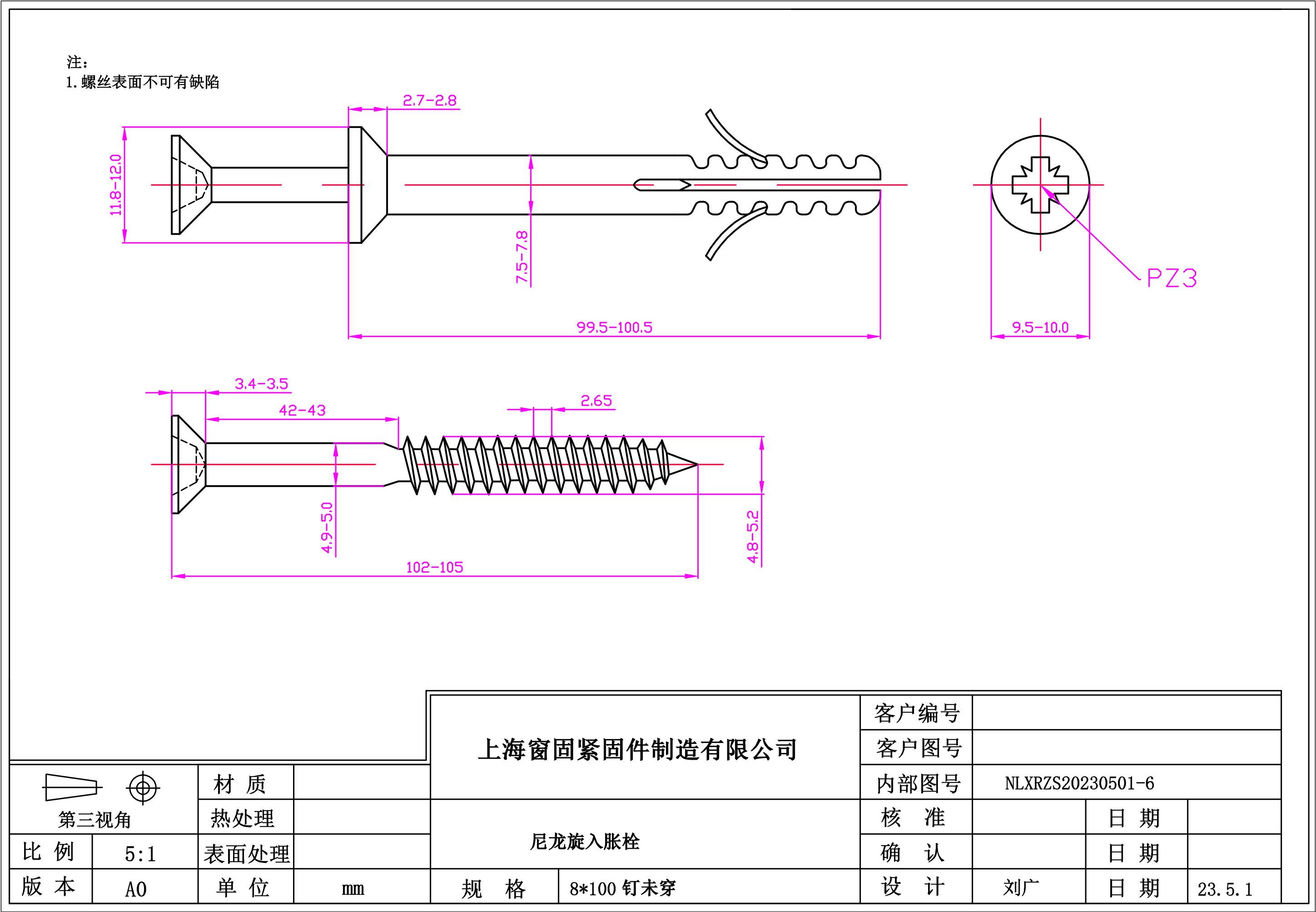 尼龙旋入式胀栓~8*100~(钉未穿)