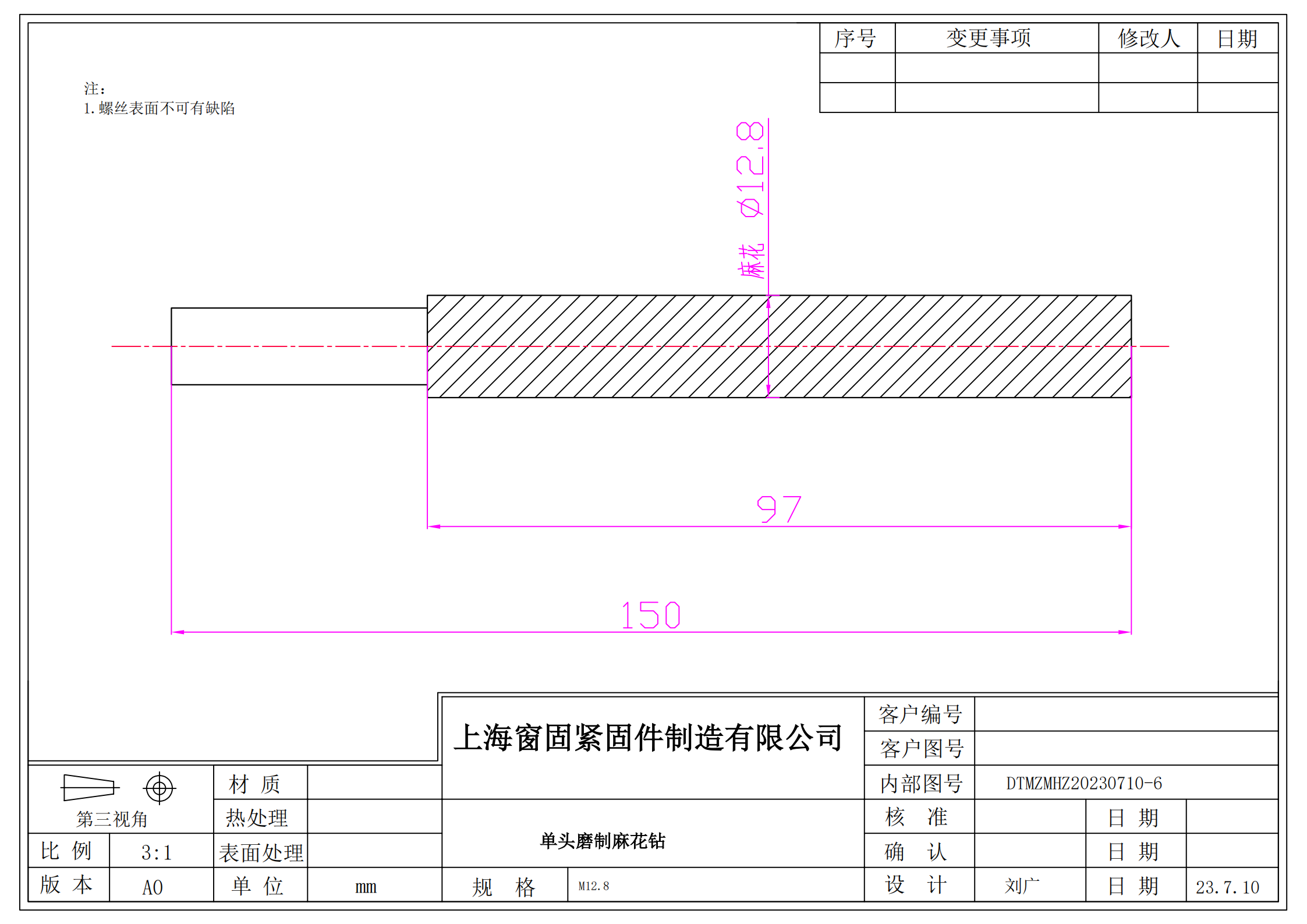 十字沉头带筋细牙束尾自钻自攻螺钉