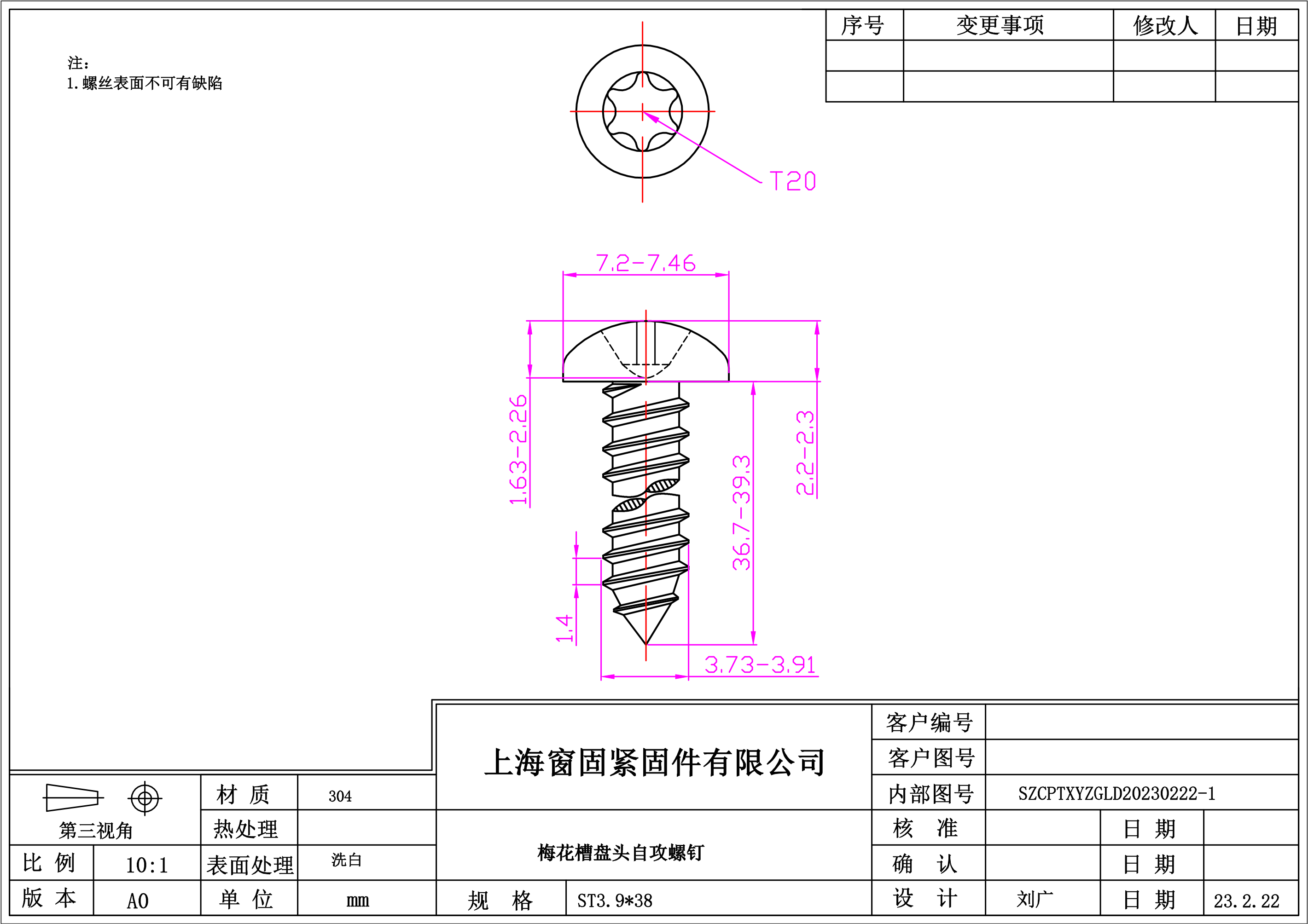 不锈钢304梅花盘头自攻螺钉~3.9*38~洗白
