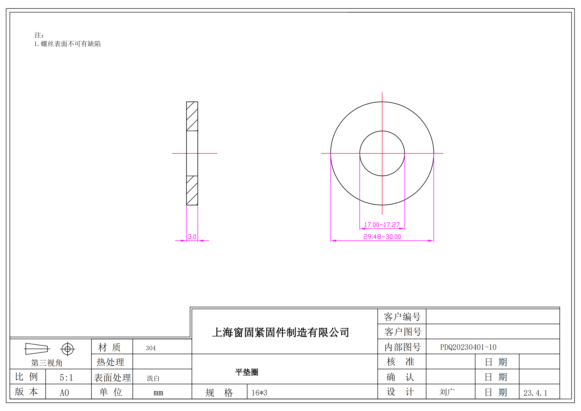 不锈钢304平垫圈~16*3~洗白