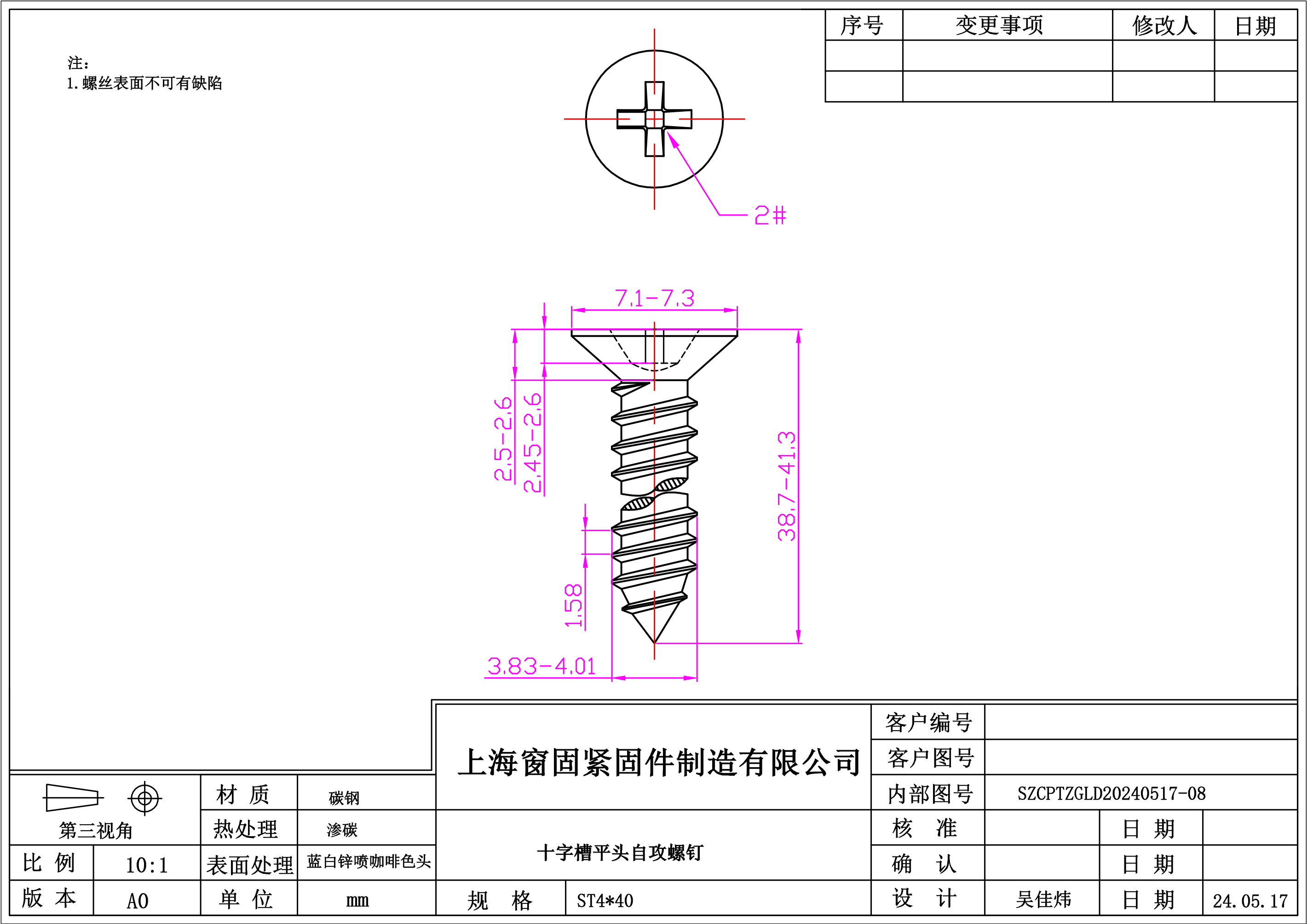 十字平头自攻螺钉~4*40~蓝白锌~(喷咖啡色头)