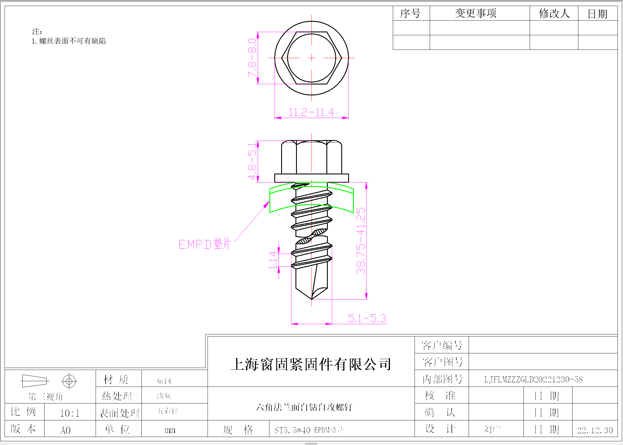 六角法兰面自钻自攻螺钉~5.5*40~五彩锌~(EPDM垫片)