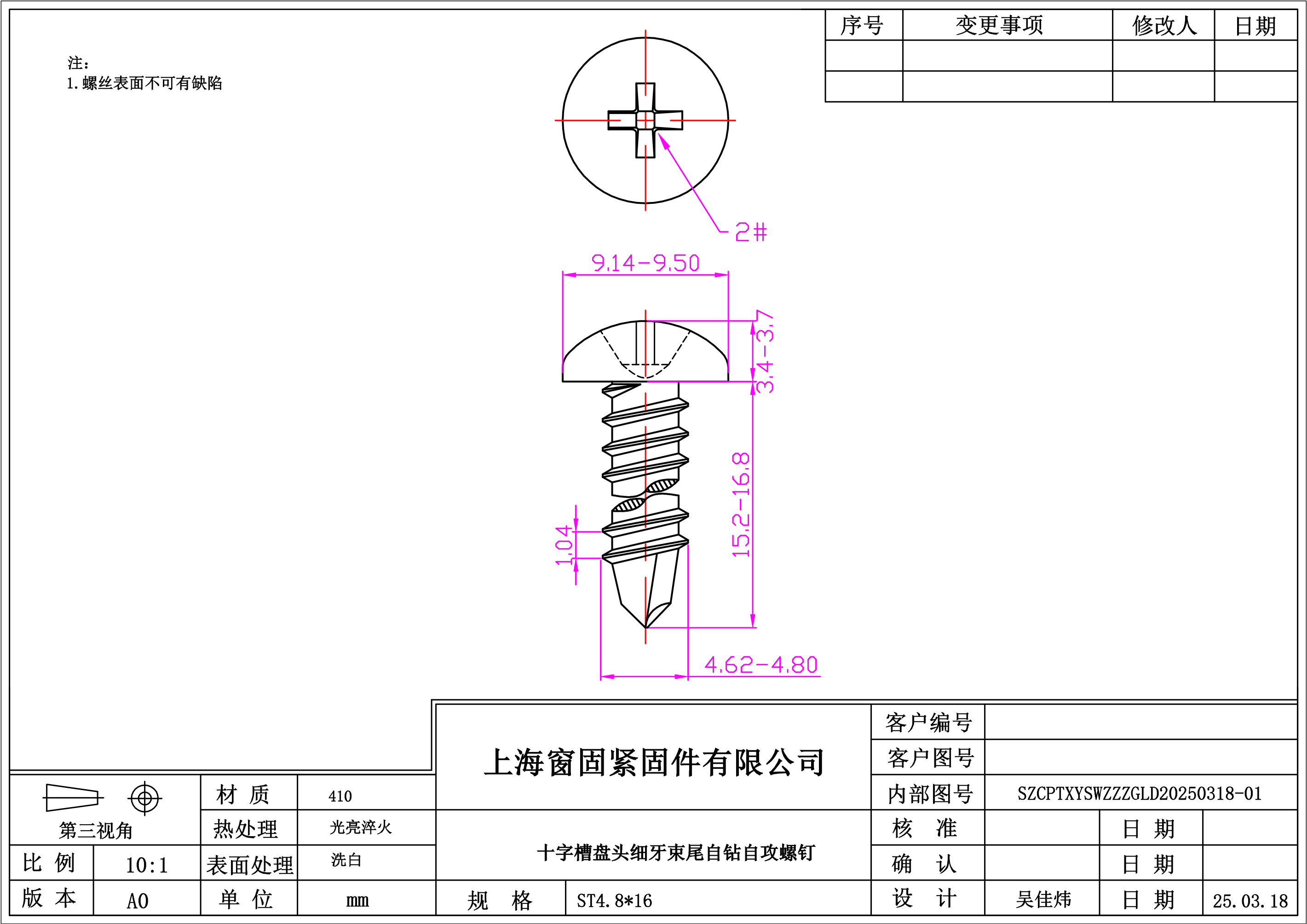 不锈钢410十字盘头细牙束尾自钻自攻螺钉~4.8*16~洗白